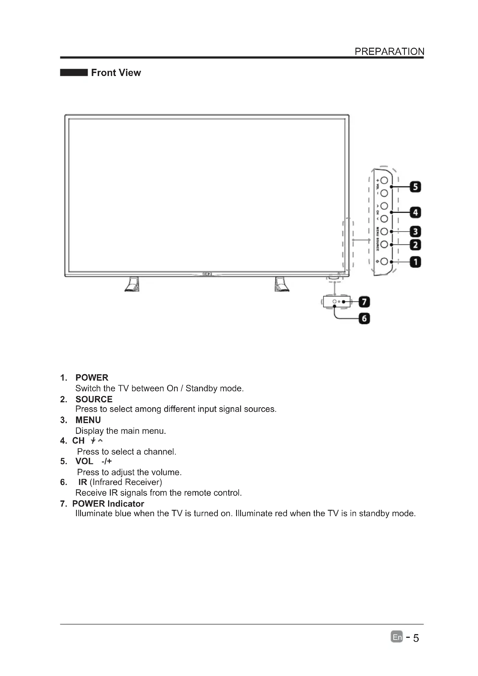 - Do not tap or shake the TV screen, or you may damage the internal circuits. Take good care of the remote control.