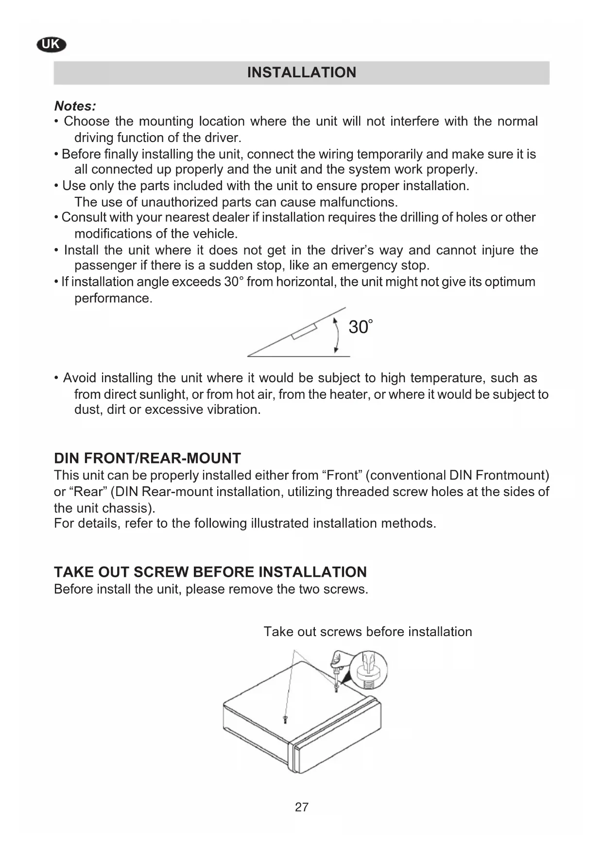 Take out screw before installation... 27