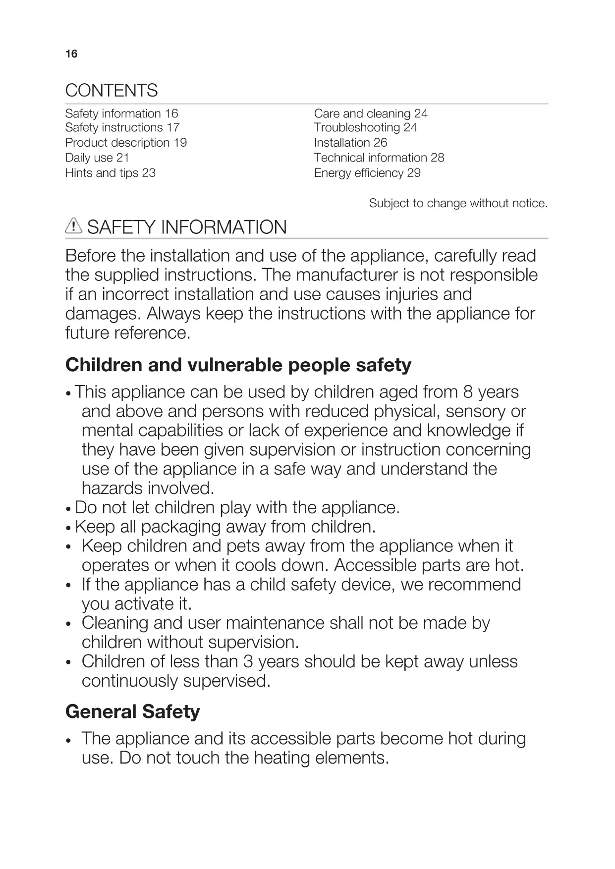 - This appliance can be used by children aged from 8 years and above and persons with reduced physical, sensory or mental capabilities or lack of experience and knowledge if they have been given supervision or instruction concerning use of the appliance in a safe way and understand the hazards involved.