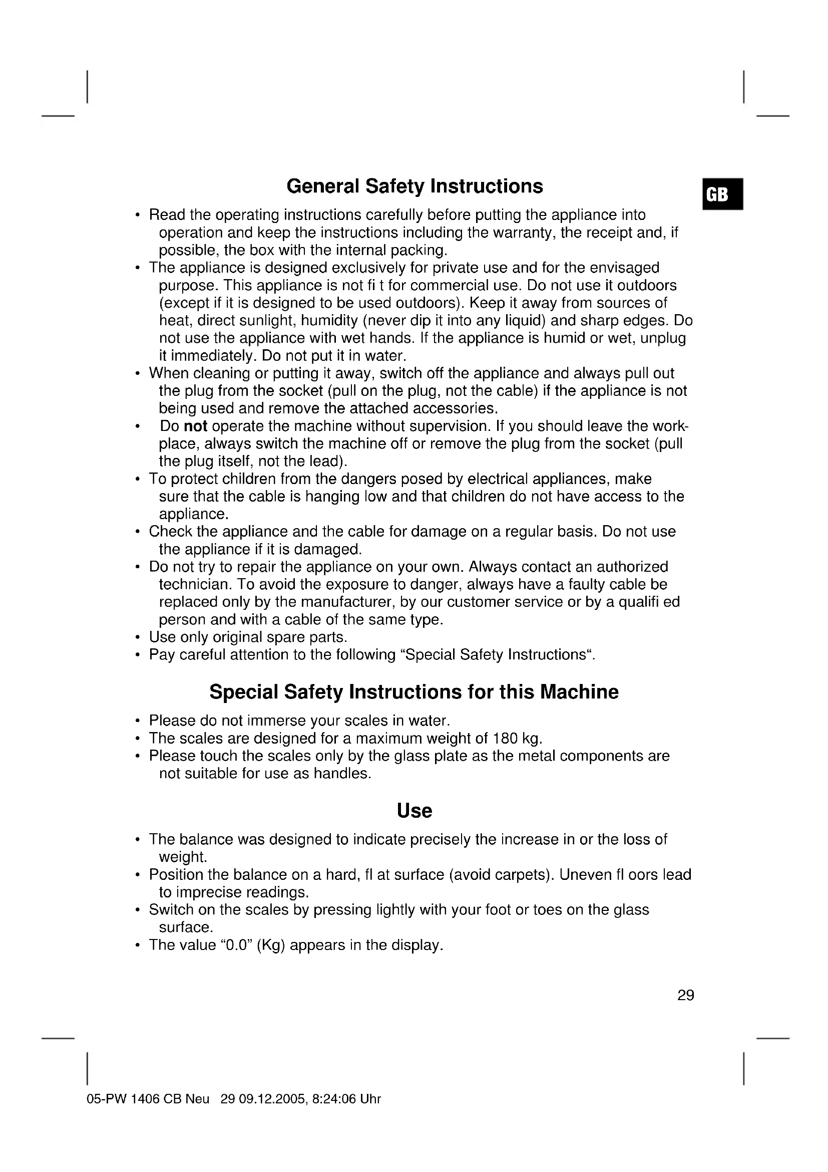 Download the instructions for your Scale in PDF format for free! Find your manual PW 1406 CB - BOMANN and take your electronic device back in hand. On this page are published all the documents necessary for the use of your device. PW 1406 CB by BOMANN.