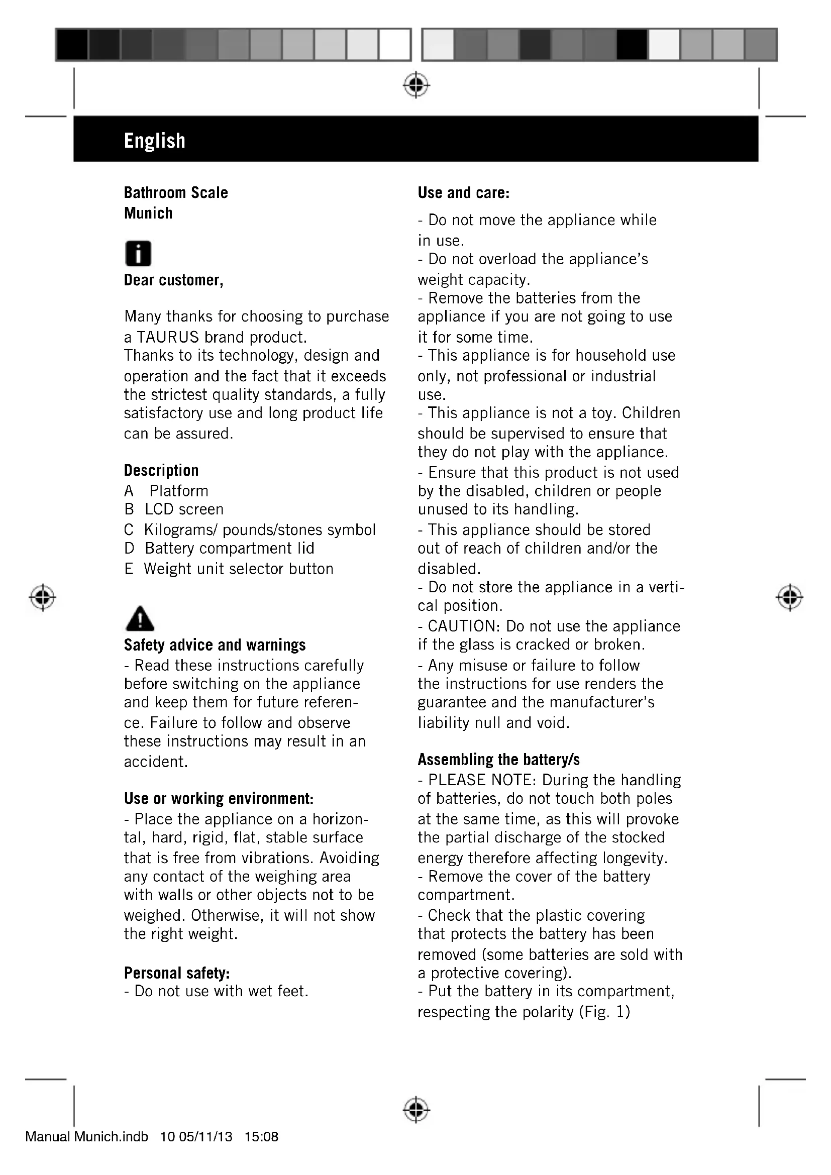 Download the instructions for your Kitchen scale in PDF format for free! Find your manual Munich - TAURUS and take your electronic device back in hand. On this page are published all the documents necessary for the use of your device. Munich by TAURUS.