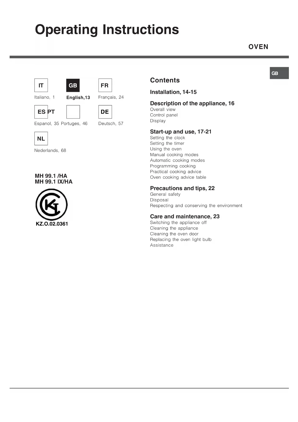 MH 99.1 HA - Oven HOTPOINT ARISTON - Free user manual and instructions