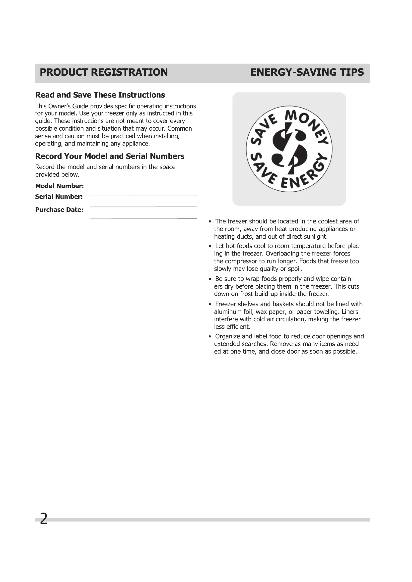 - Do not use razor blades or other sharp instruments which can scratch the appliance surface when remov- ing adhesive labels. Any glue left from the tape can be removed with a mixture of warm water and mild detergent or the residue can be touched with the sticky side of tape already removed. DO NOT REMOVE THE SERIAL PLATE. This Use & Care Guide provides general operating instructions for your model. Use the freezer only as instructed in this Use & Care Guide. Before starting the freezer, follow these important rst steps. Location