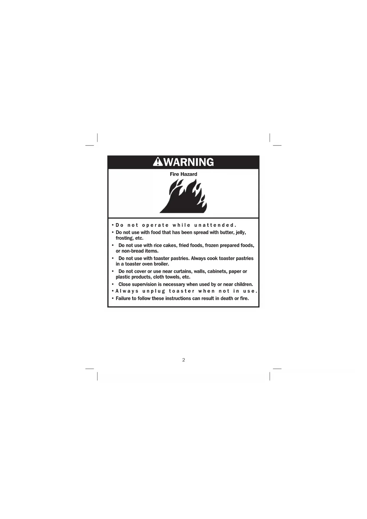 2. Do not operate toaster while unattended.
