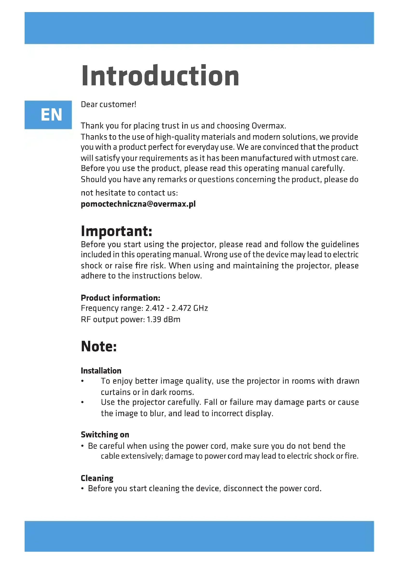 Multipic - Projector Overmax - Free user manual and instructions