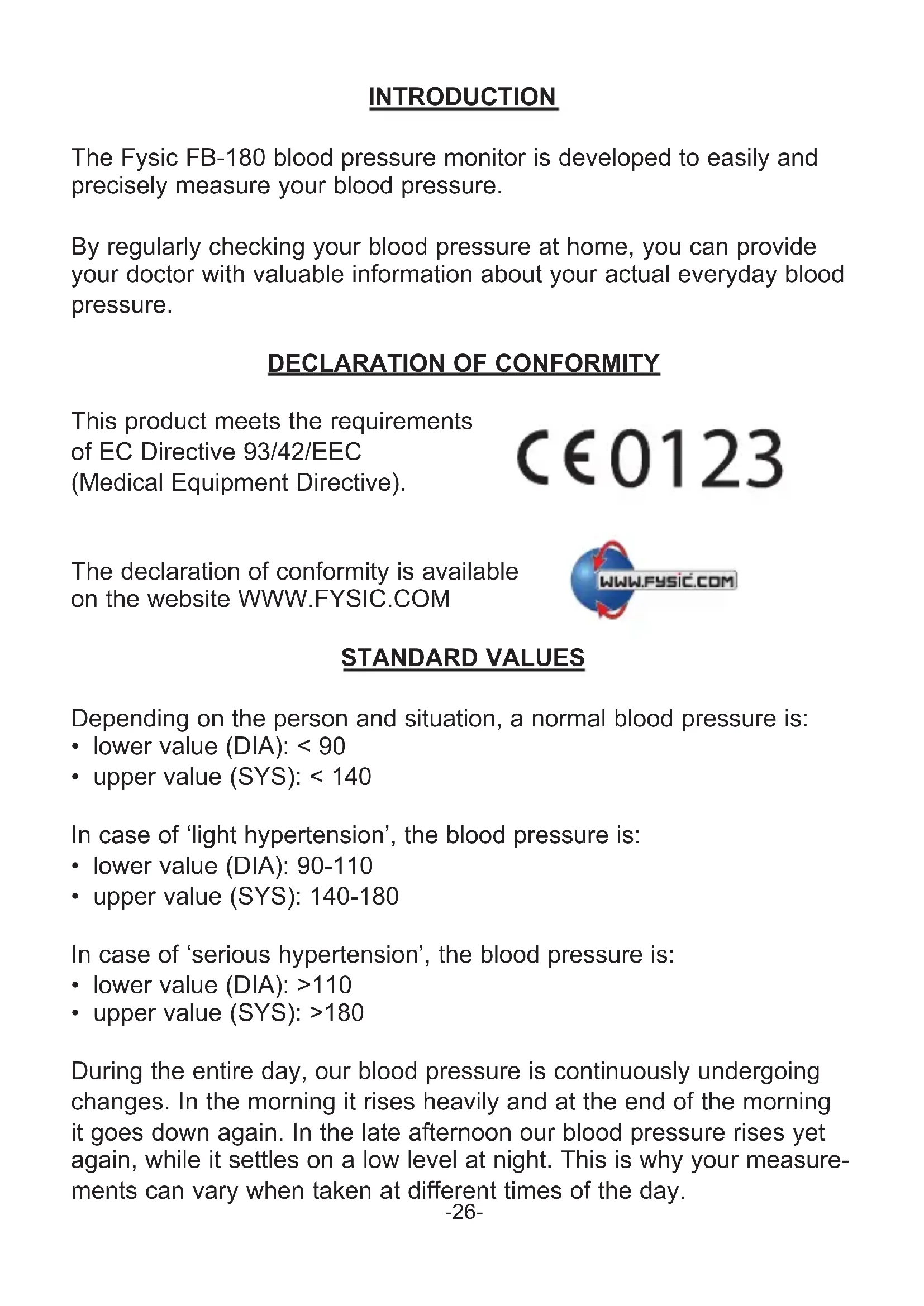 FB180 - Blood pressure monitor Fysic - Free user manual and instructions