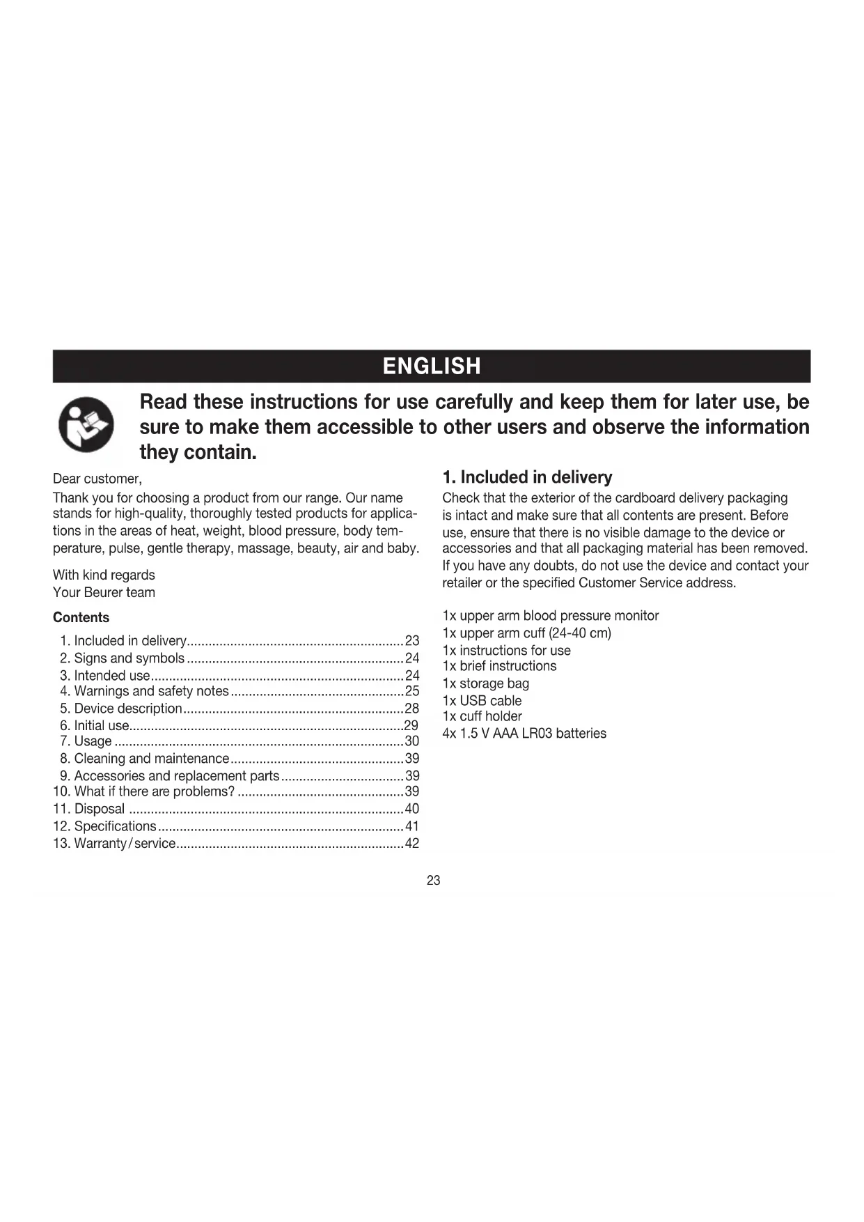 1x upper arm cuff (24-40 cm)