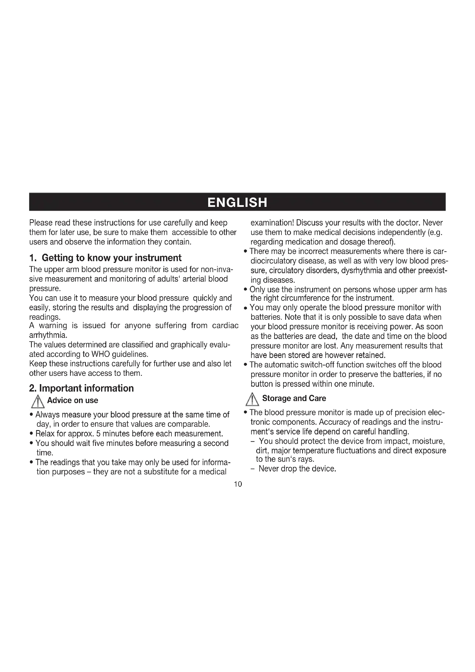 The readings that you take may only be used for informa- tion purposes – they are not a substitute for a medical examination! Discuss your results with the doctor. Never use them to make medical decisions independently (e.g. regarding medication and dosage thereof).