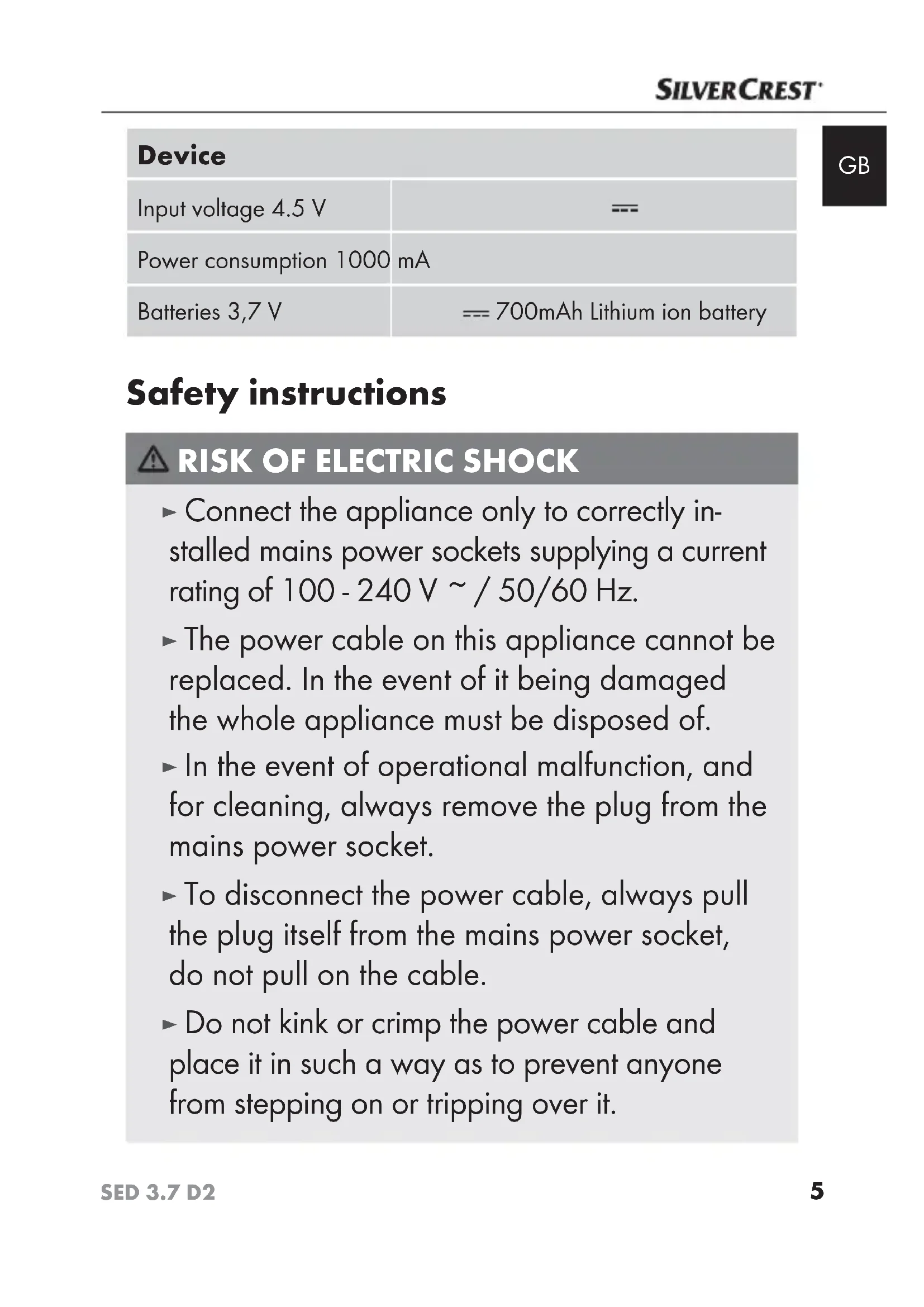 USER MANUAL SED 3.7 D2 SILVERCREST