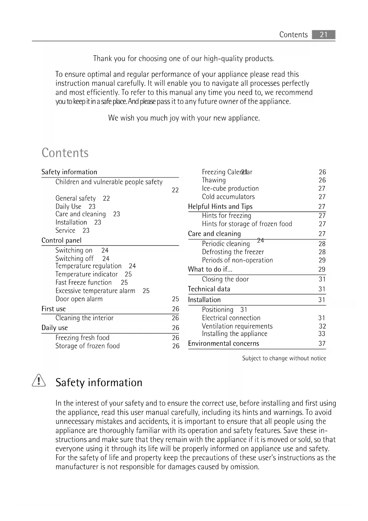 Hints for storage of frozen food 27