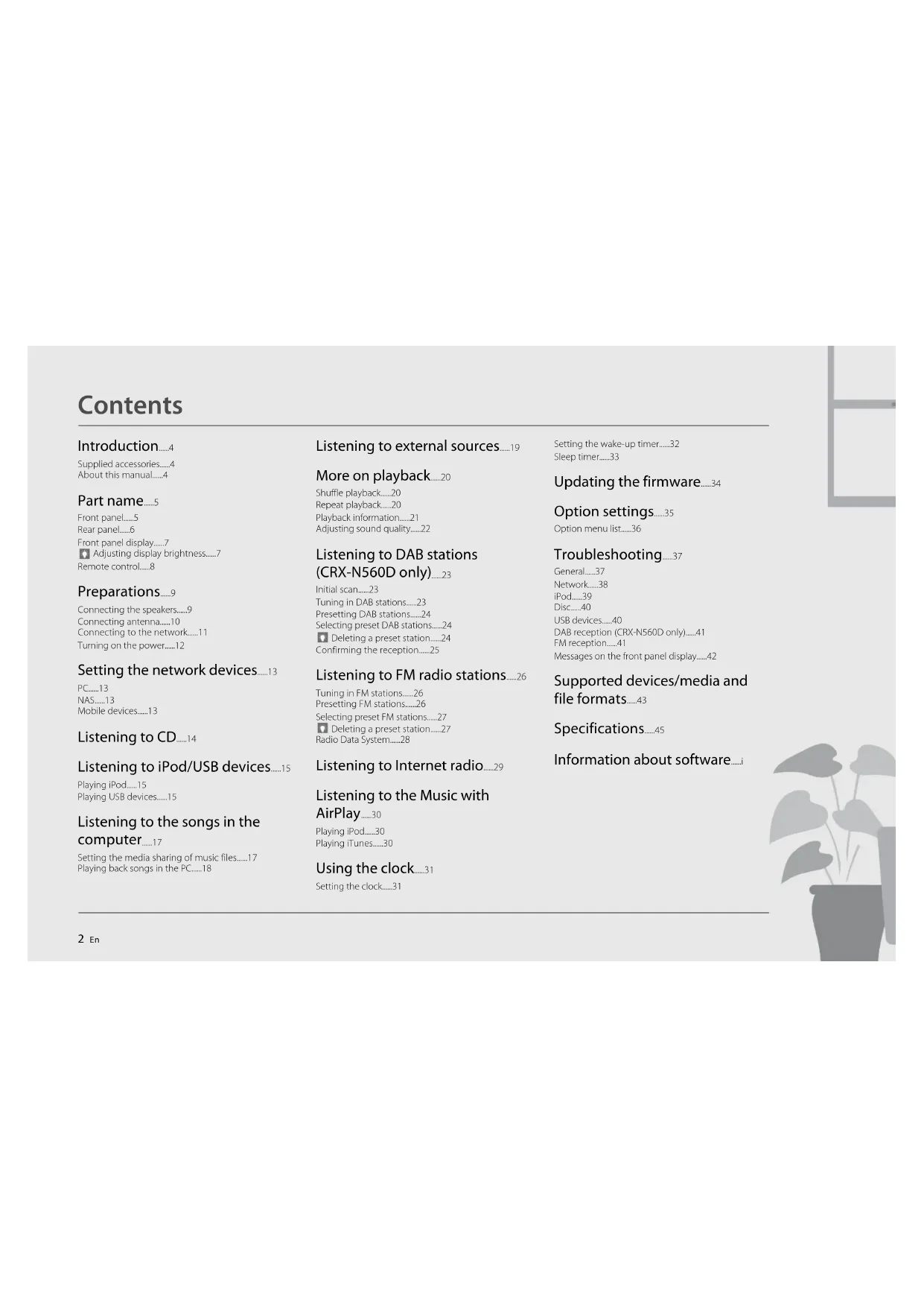 - Adjusting sound quality Listening to DAB stations (CRX-N560D only) p. 22