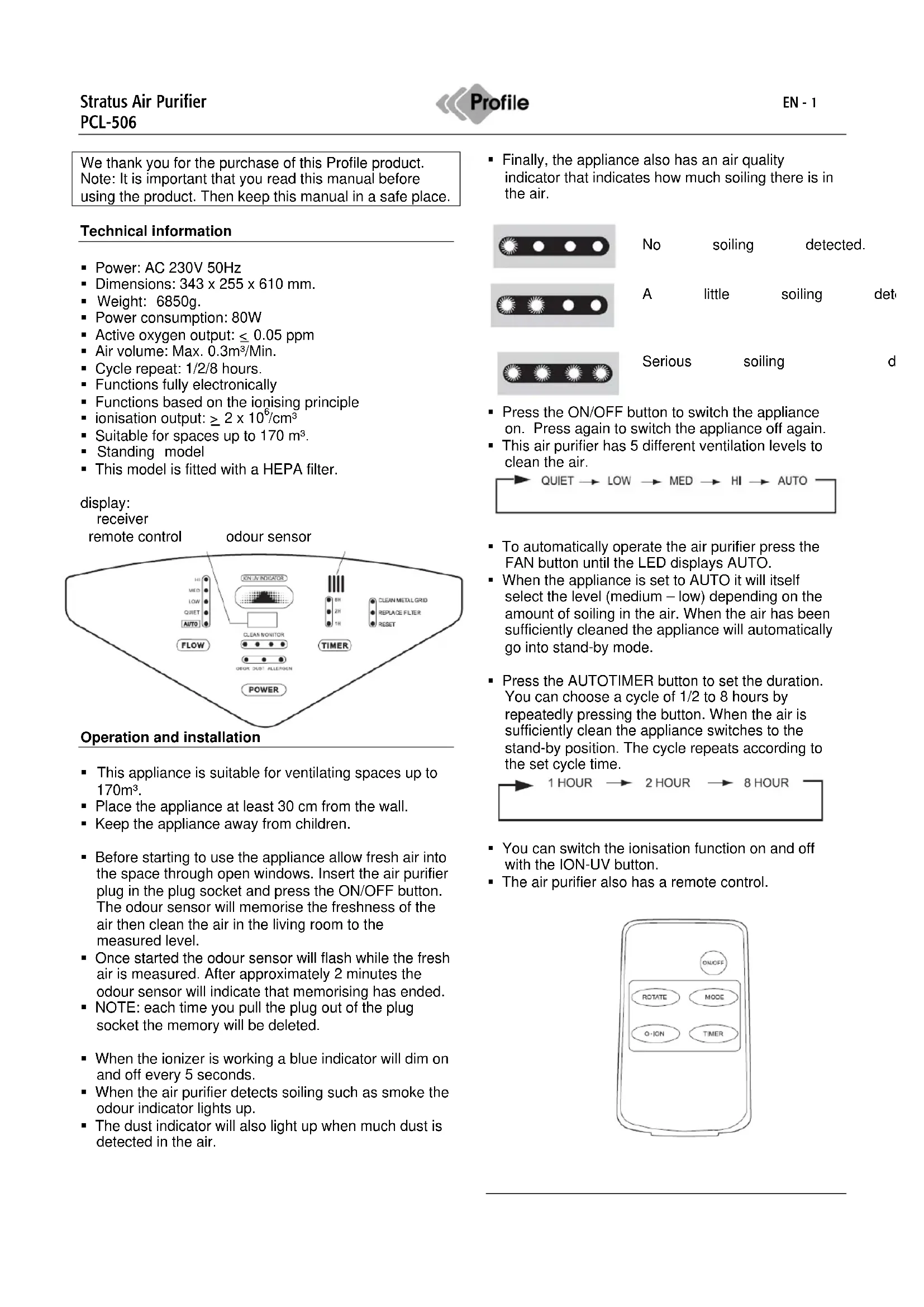 Download the instructions for your Air purifier in PDF format for free! Find your manual Stratus PCL506 - Profile and take your electronic device back in hand. On this page are published all the documents necessary for the use of your device. Stratus PCL506 by Profile.