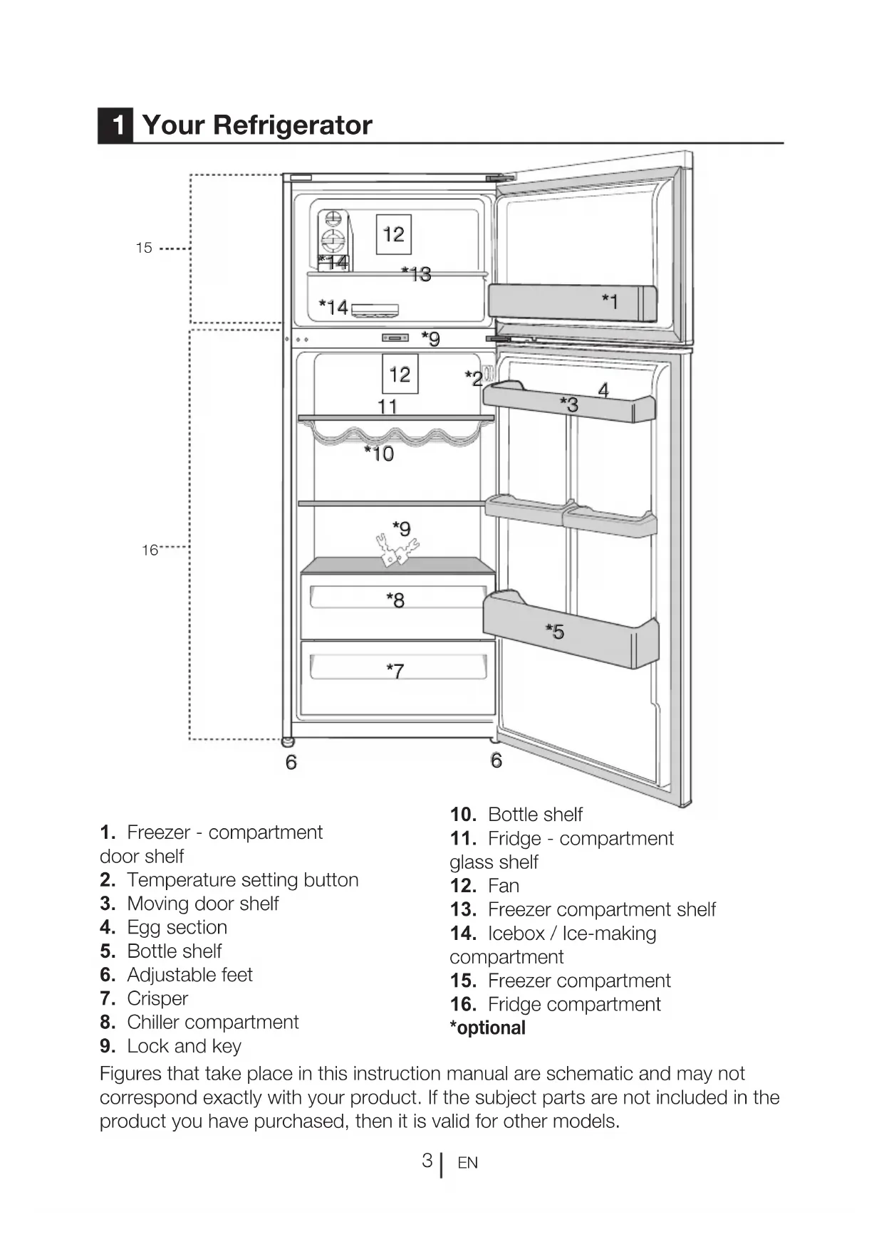 Figures that take place in this instruction manual are schematic and may not correspond exactly with your product. If the subject parts are not included in the product you have purchased, then it is valid for other models. 1 Your Refrigerator