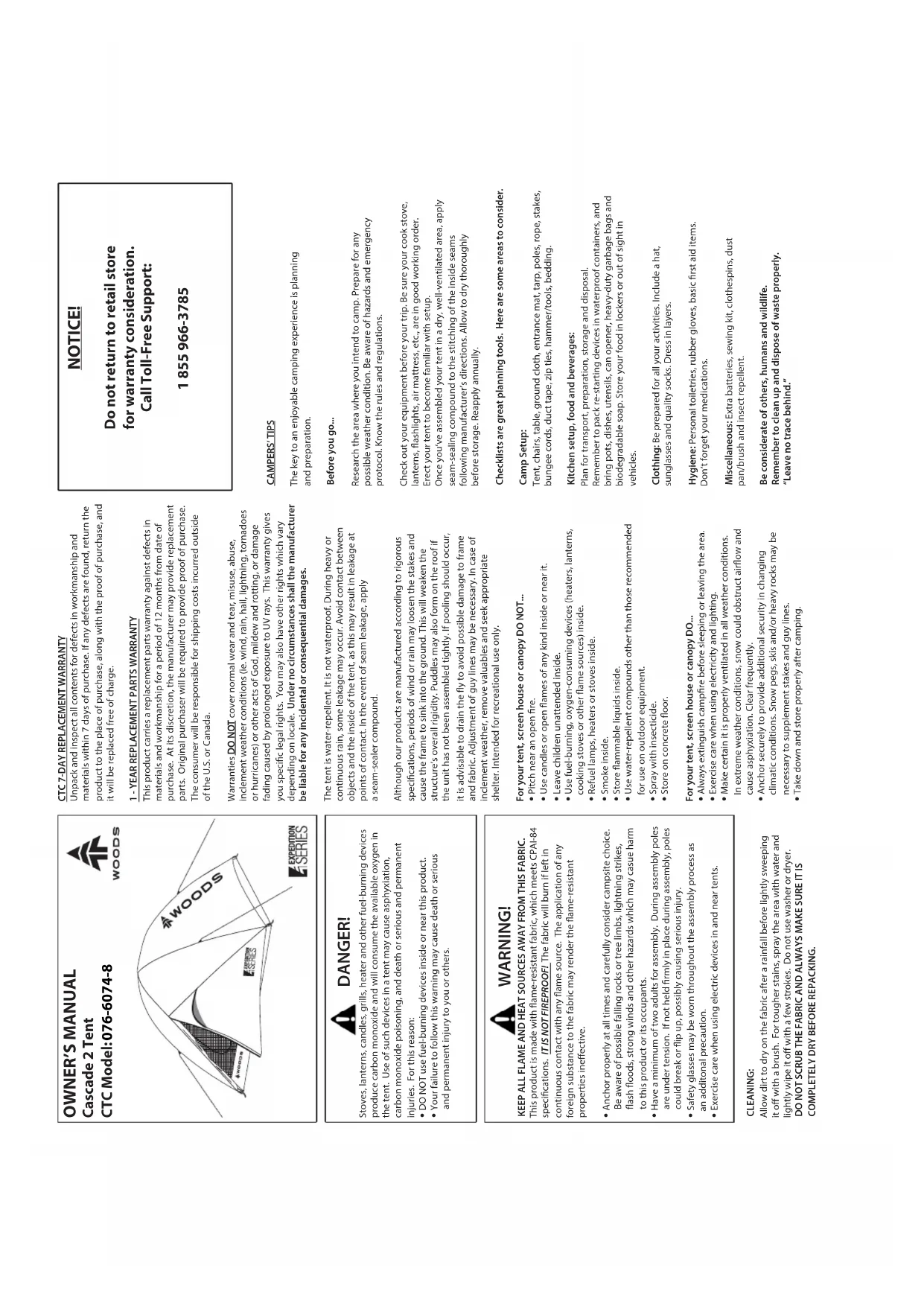 Cascade 2 - Tent WOODS - Free user manual and instructions
