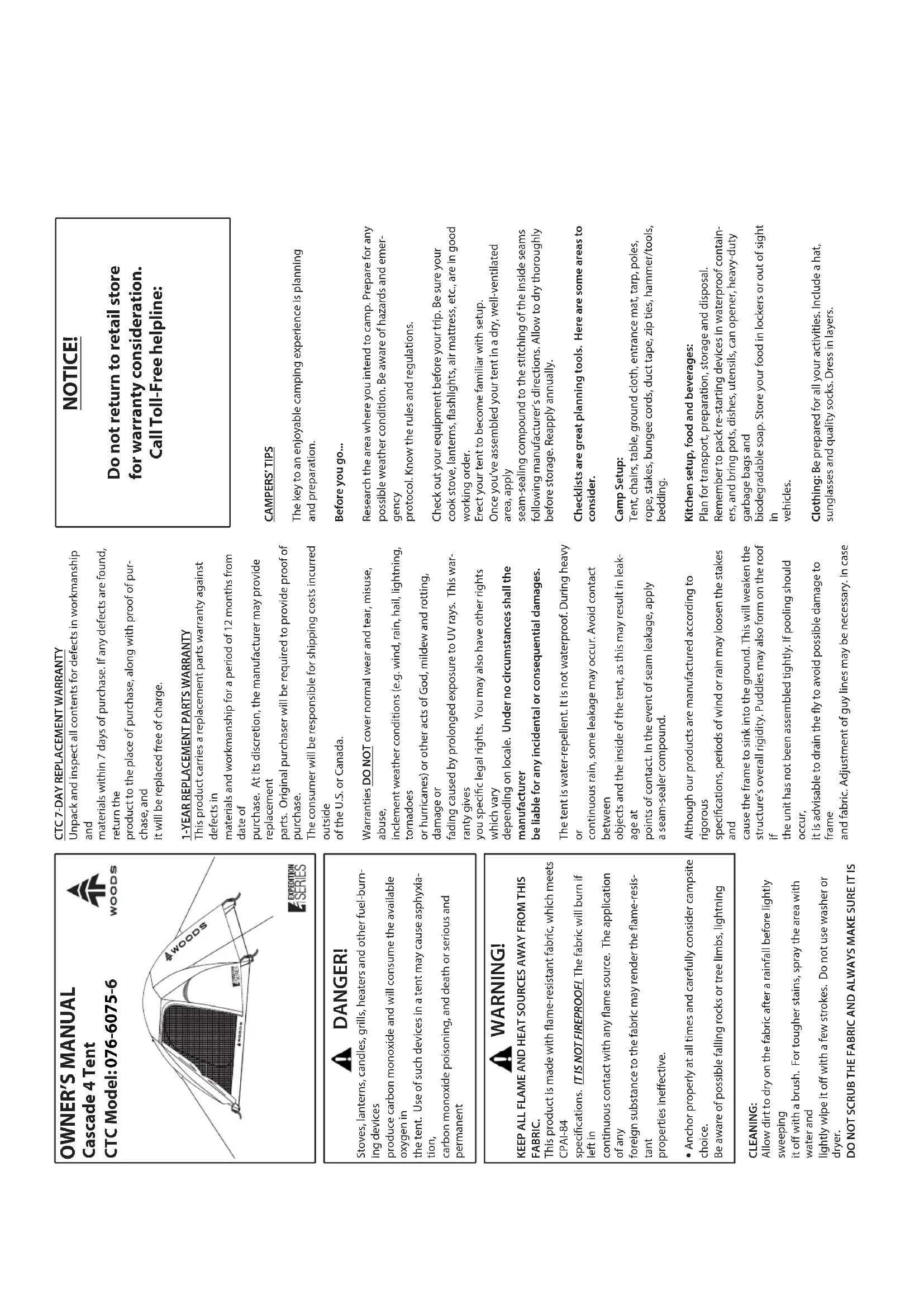 the tent. Use of such devices in a tent may cause asphyxia