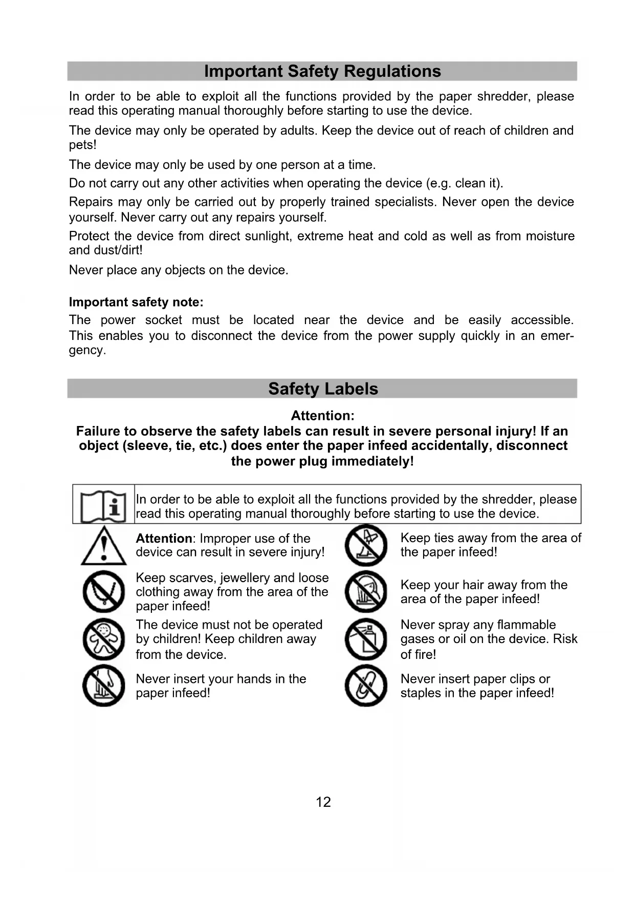 In order to be able to exploit all the functions provided by the paper shredder, please read this operating manual thoroughly before starting to use the device.