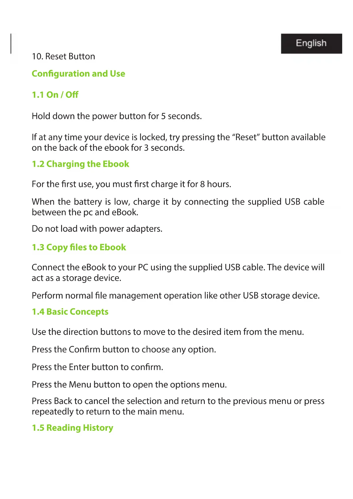 8. Maintenance: If you want to clean your ebook, use a dry cloth (never solvents such