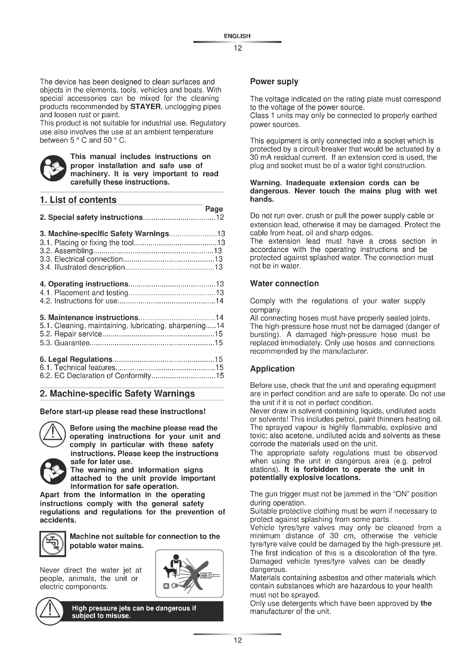 If the pressure washer should happen to fail despite the care taken in manufacture and testing, repair should be carried out by an authorised service agent for STAYER garden products.