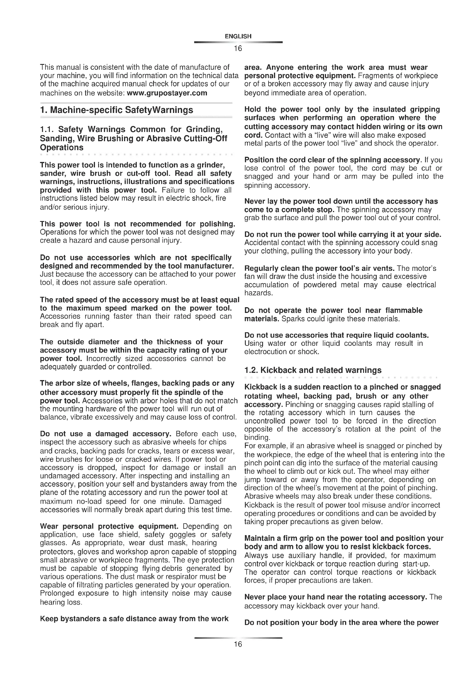 1.1. SafetyWarnings Common for Grinding, Sanding, Wire Brushing or Abrasive Cutting-Off Operations