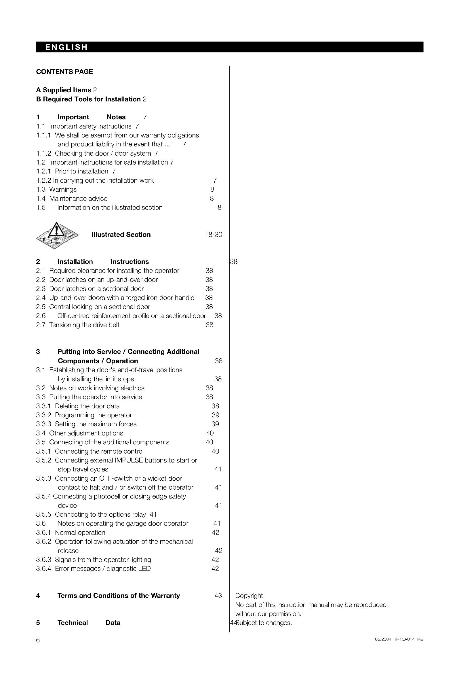 06.2004 TR10A014 RE2.2 ENGLISH Note A caution notice warning about the trap risk must be permanently fixed in a conspicuous place close to the per- manently installed buttons used to actuate the operator.