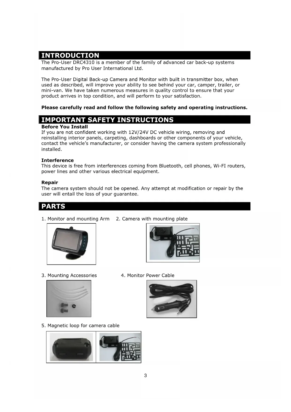 Download the instructions for your Rear Camera in PDF format for free! Find your manual DRC4310 - Pro-User and take your electronic device back in hand. On this page are published all the documents necessary for the use of your device. DRC4310 by Pro-User.