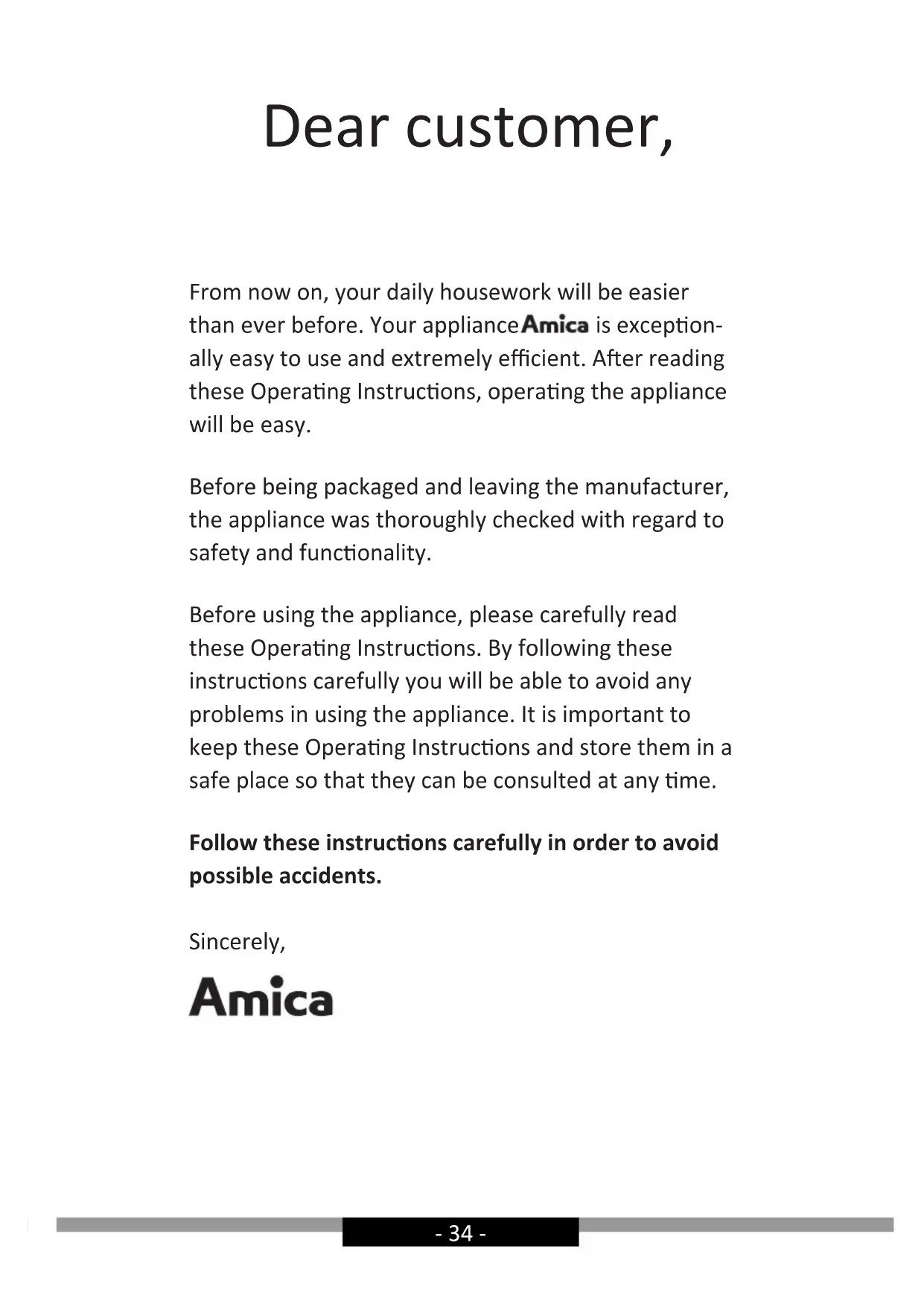 - For safety reasons do not repair the appliance yourself. Repairs carried out by persons who do not have the required qualications may result in serious danger for the user of the appliance.