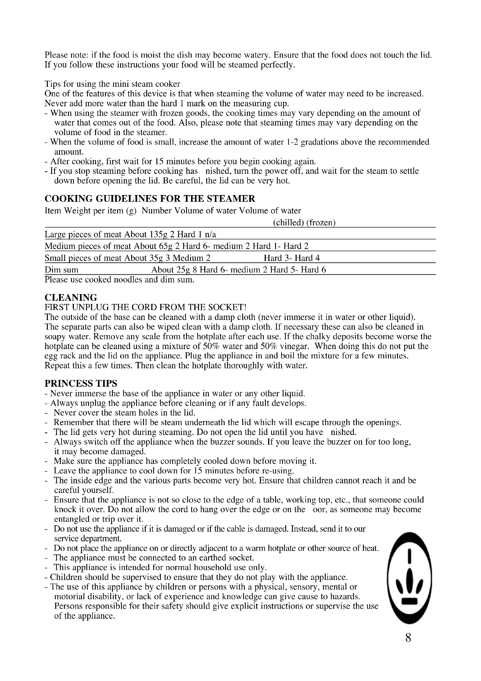 USER MANUAL Classic Egg Cooker & Mini Steamer 262008 PRINCESS