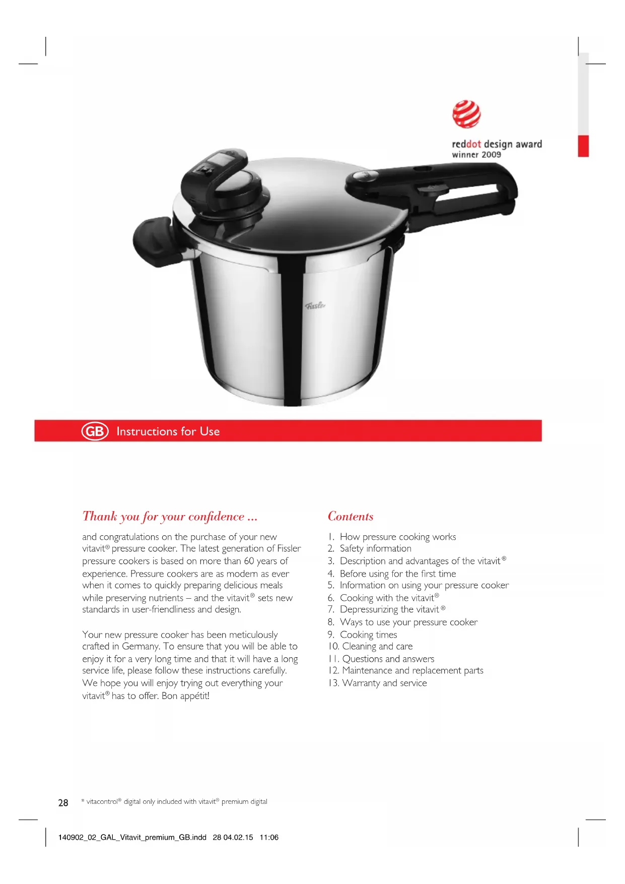 Vitavit Premium Digital - Saucepan Fissler - Free user manual and instructions