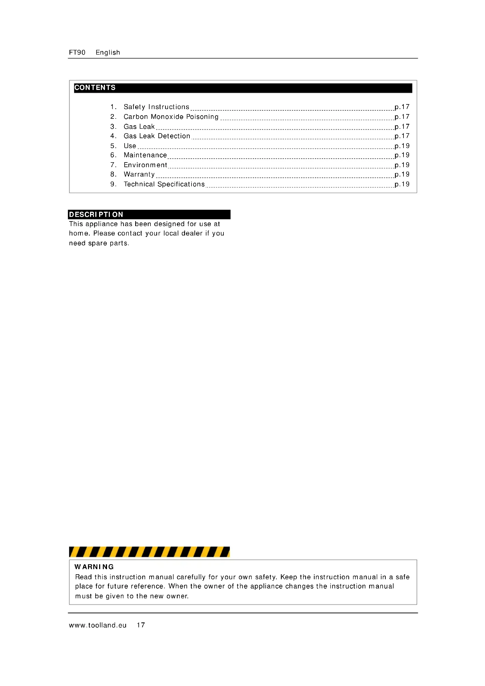 FT 92 - Heating Toolland - Free user manual and instructions