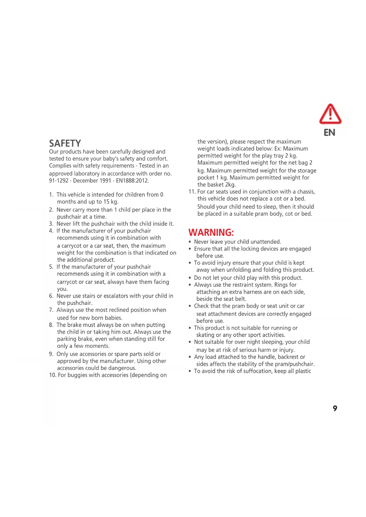 Index ZHTW9 SAFETY Our products have been carefully designed and tested to ensure your baby’s safety and comfort. Complies with safety requirements - Tested in an approved laboratory in accordance with order no. 91-1292 - December 1991 - EN1888:2012.