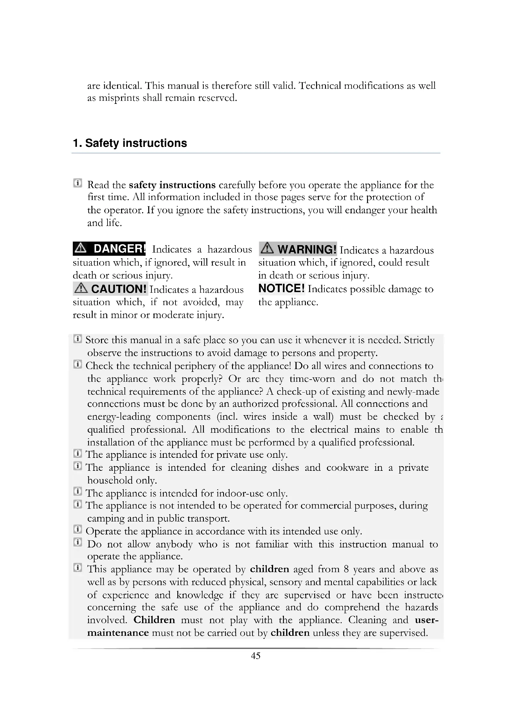 Read the safety instructions carefully before you operate the appliance for the first time. All information included in those pages serve for the protection of the operator. If you ignore the safety instructions, you will endanger your health and life.