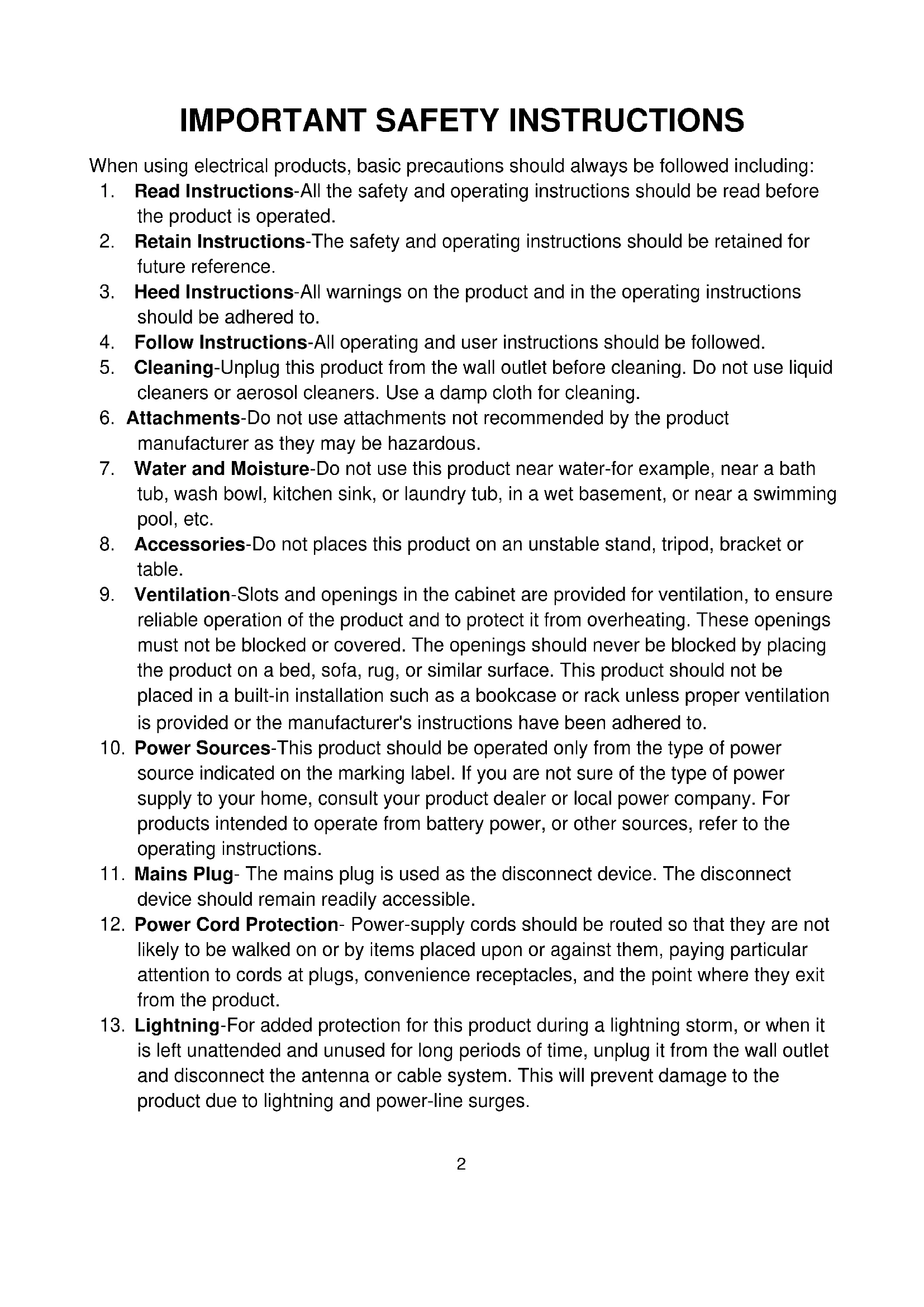 - Accessories-Do not places this product on an unstable stand, tripod, bracket or table.