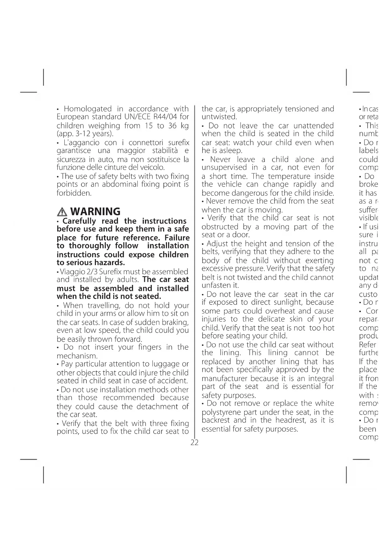 - The use of safety belts with two fixing points or an abdominal fixing point is forbidden. Car seat, Viaggio 2/3 Surefix, “Semi-universal” model, with belts and Surefix EN_English22