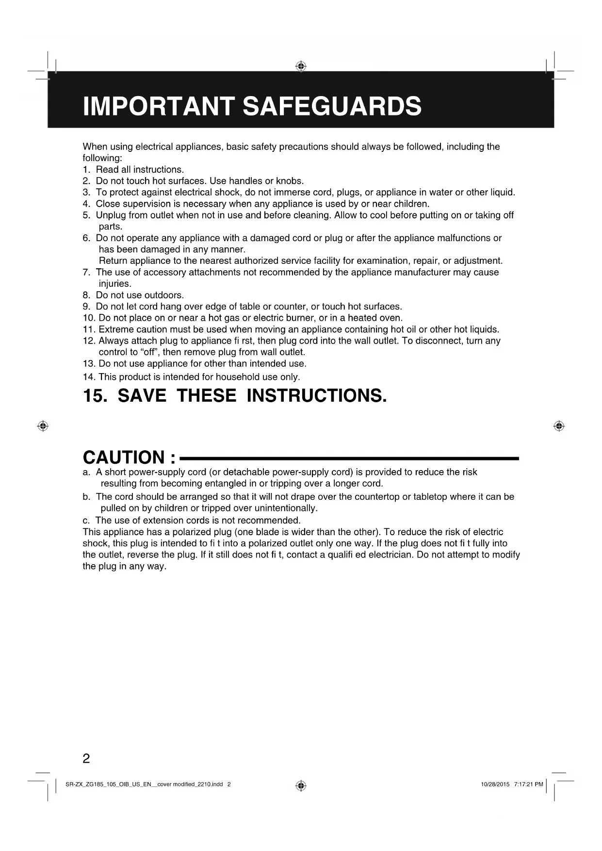 15. SAVE THESE INSTRUCTIONS.