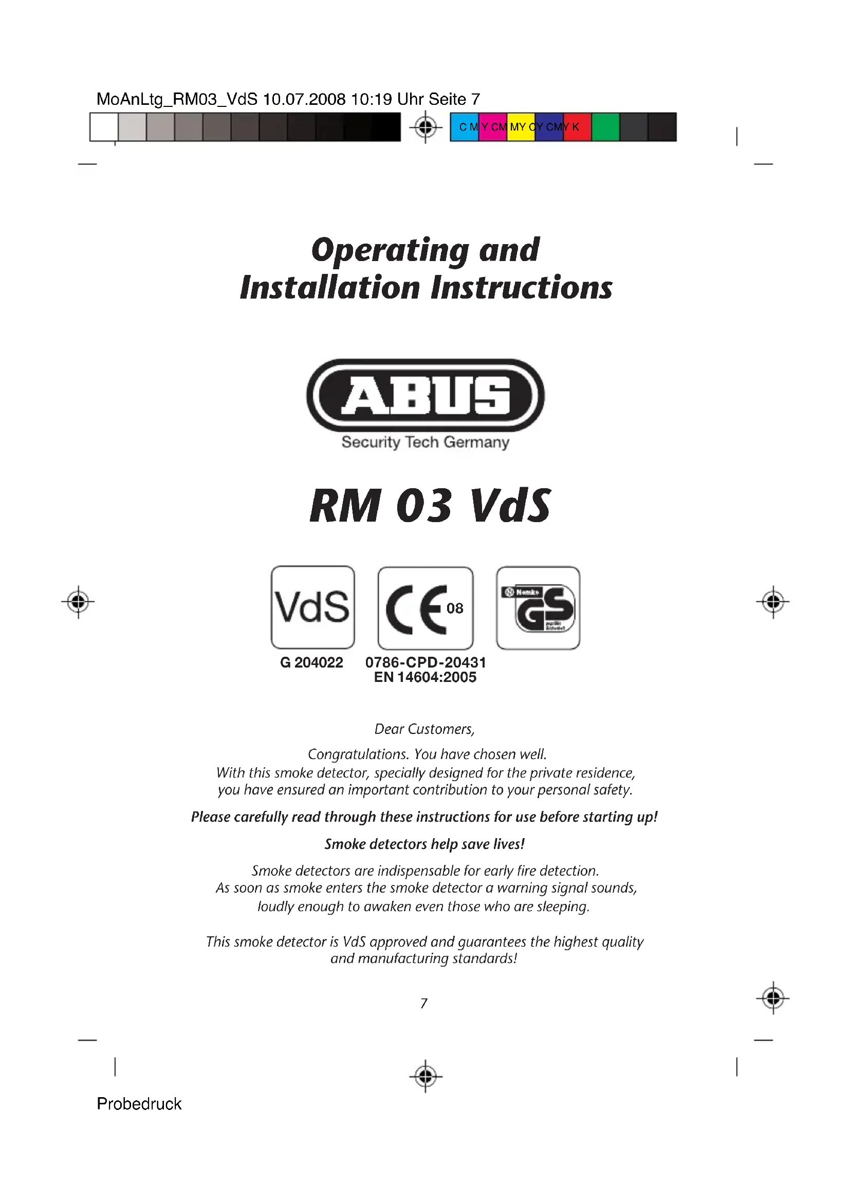 Download the instructions for your Smoke detector in PDF format for free! Find your manual RM03 VdS - ABUS and take your electronic device back in hand. On this page are published all the documents necessary for the use of your device. RM03 VdS by ABUS.