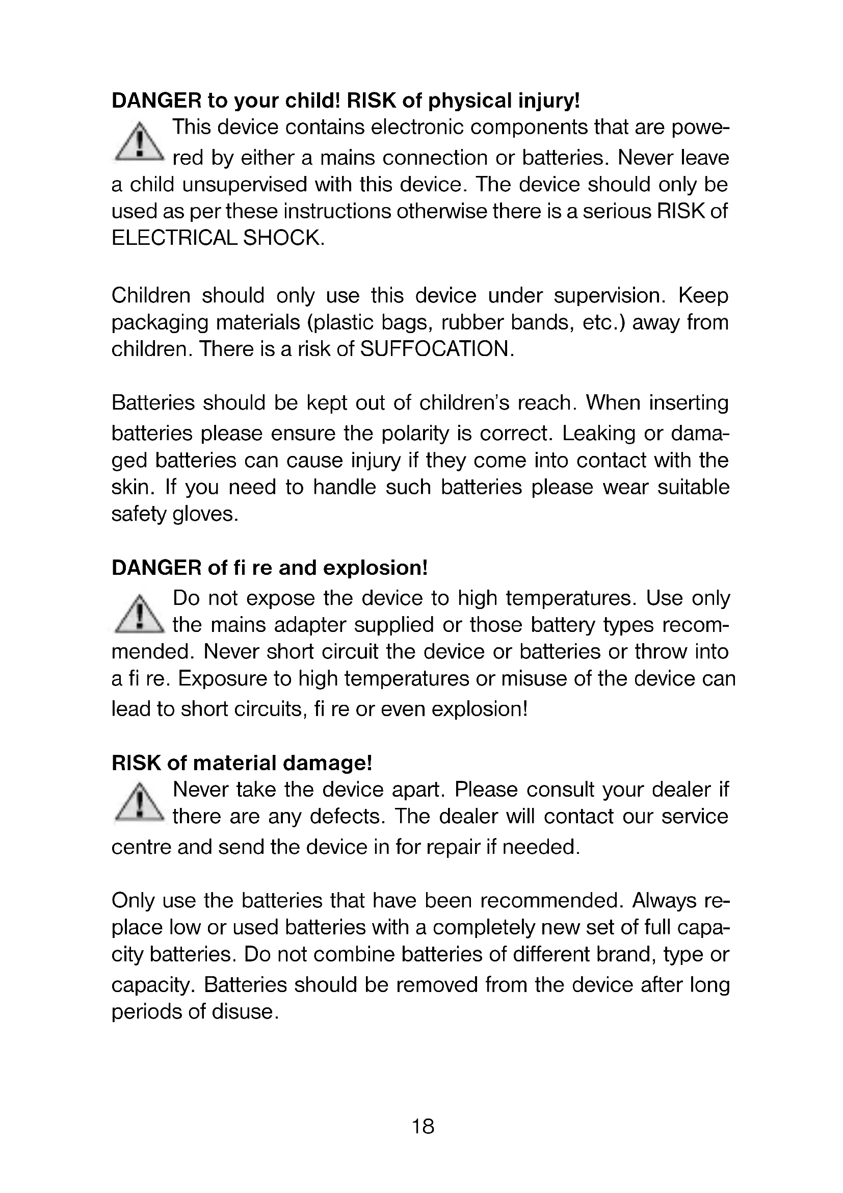 5. Only use fresh batteries as specified in the user's