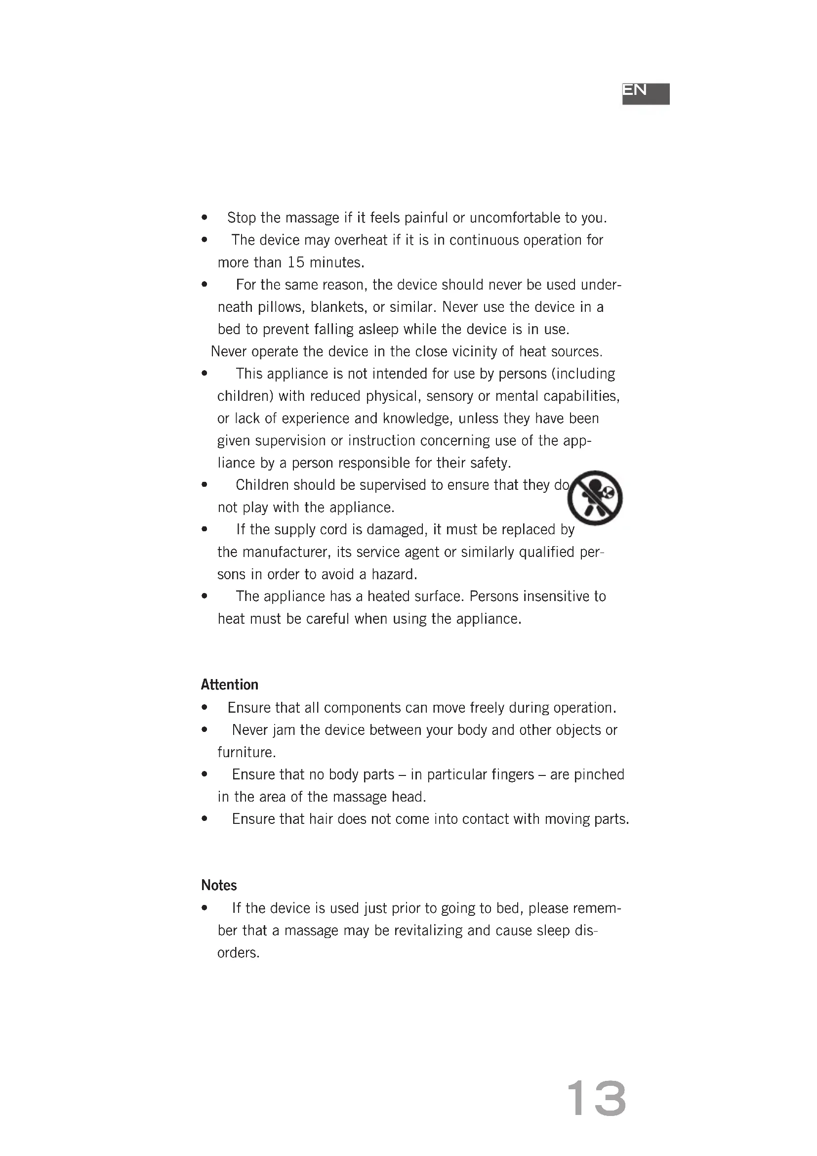- Ifthedeviceisusedjustpriortogoingtobed,pleaseremem- ber that a massage may be revitalizing and cause sleep dis- orders.14