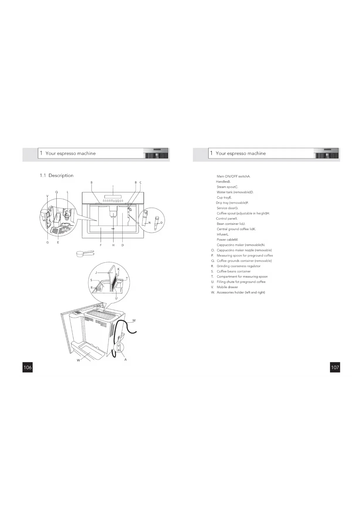 This espresso machine will make delicious cups of coffee, espresso and cappuccino. You can customise the settings of the machine to suit your personal preferences and tastes. This manual describes how to make optimum use of the espresso machine. Besides information on how to operate the machine, you will also fi nd background information that may come in handy when using this appliance. Coffee has been used in the factory to test the appliance and it is therefore completely normal that there are traces of coffee in the mill. This appliance is however guaranteed to be new. Store the user manual in a safe place. This will ensure that any subsequent users also benefi t from it. Enjoy your espresso machine!