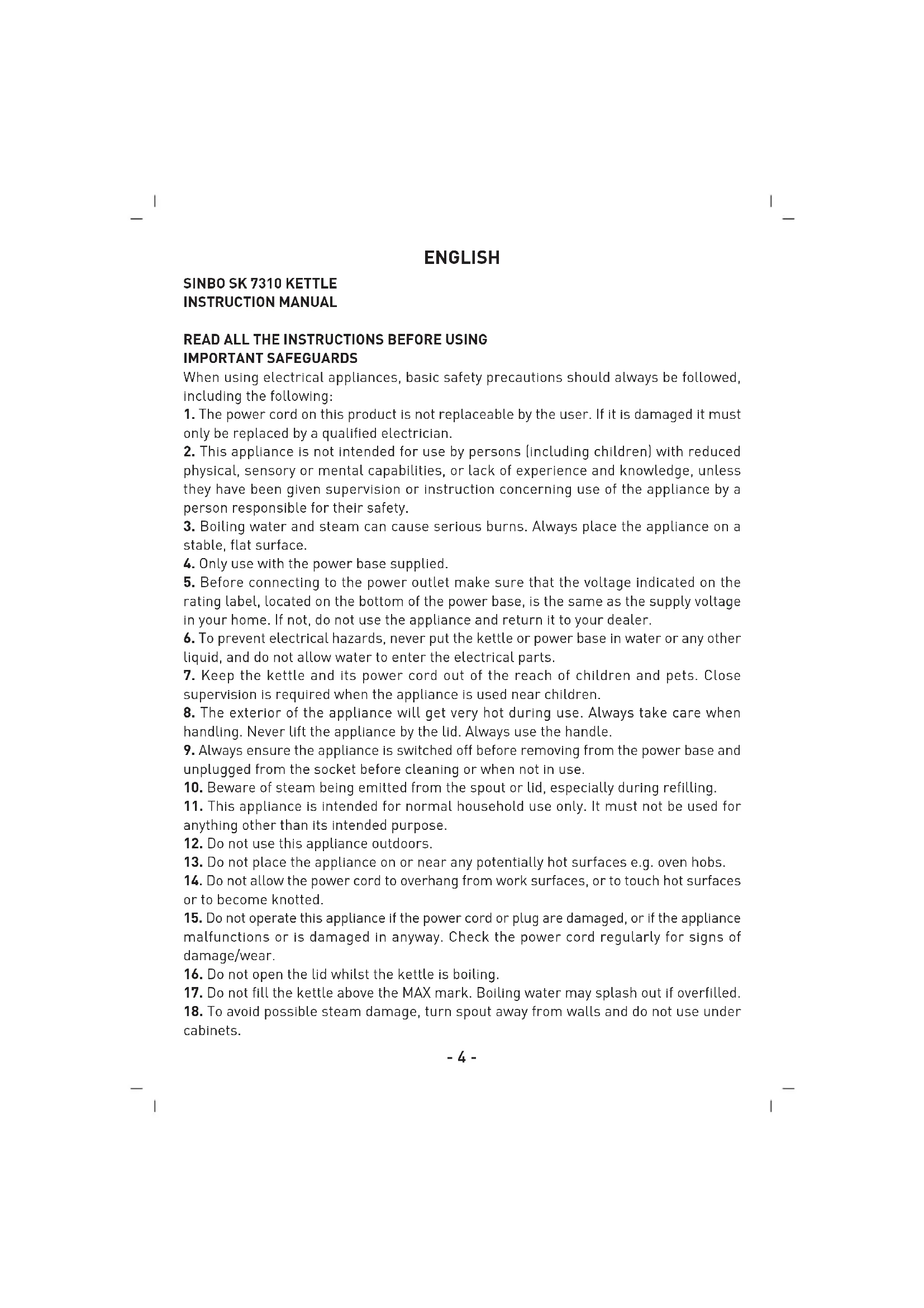 SK7310C - Kettle SINBO - Free user manual and instructions