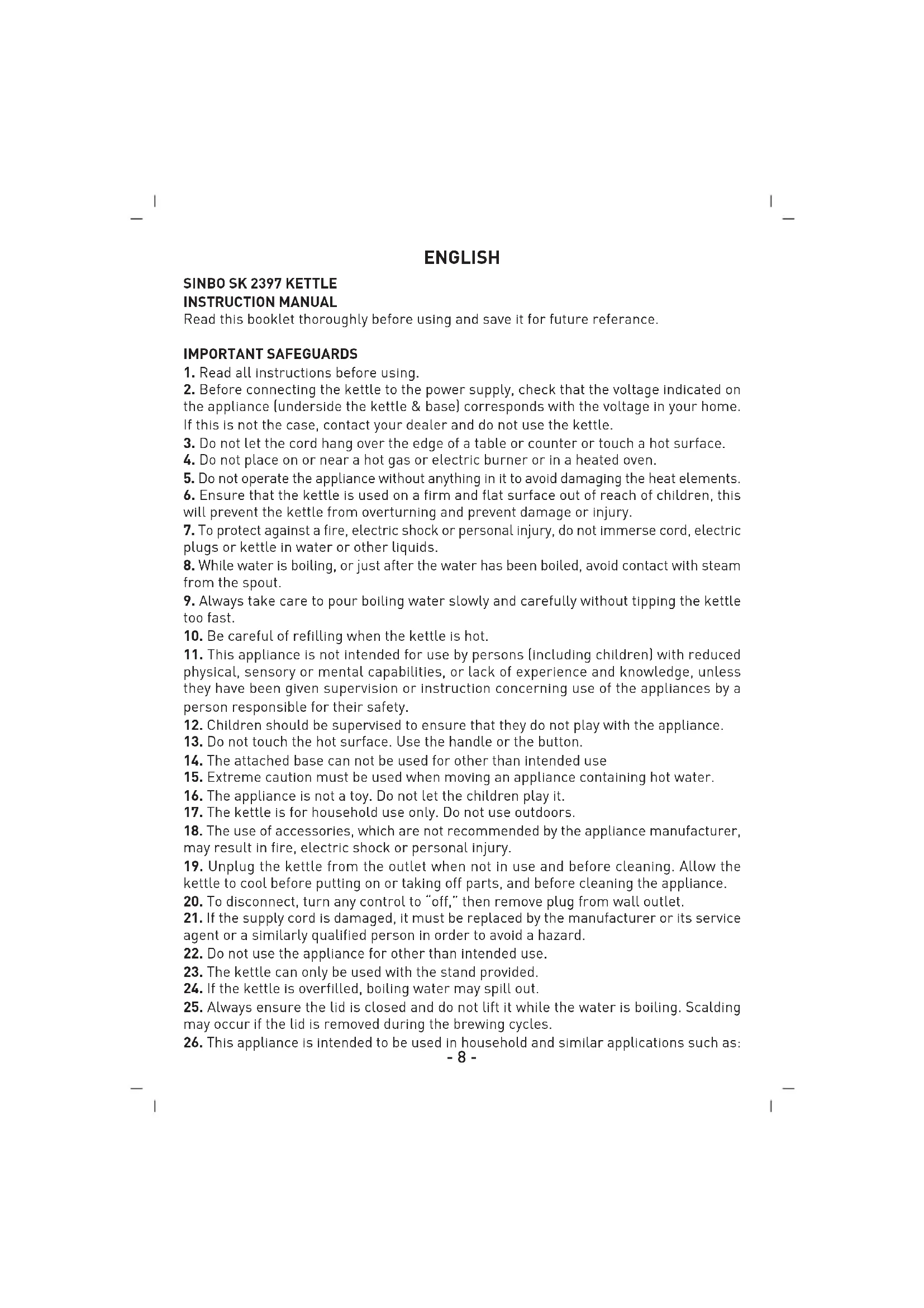 SK2397 - Kettle SINBO - Free user manual and instructions