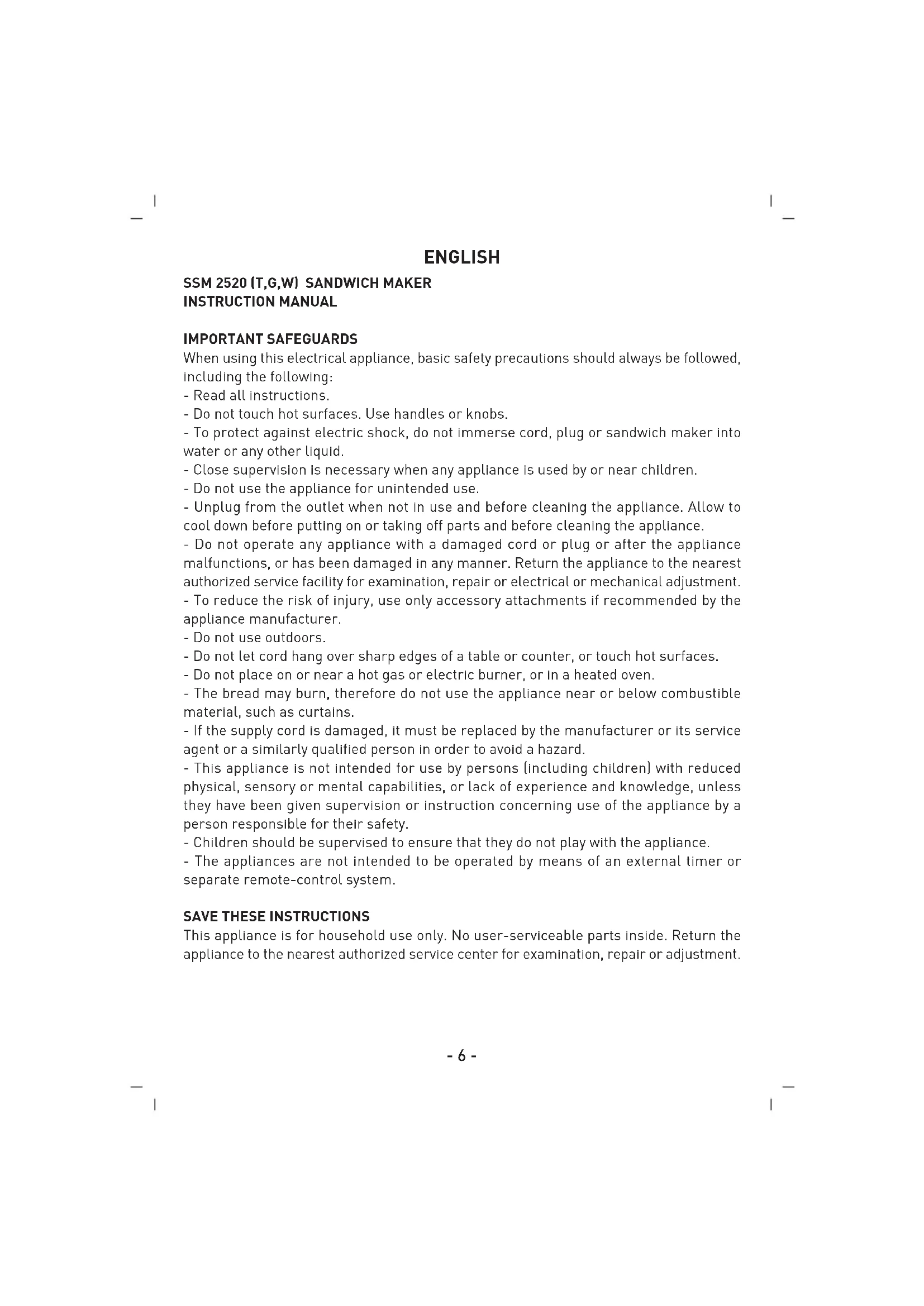 SSM 2520 (T,G,W) GRILLE-PAIN MODE D'EMPLOI