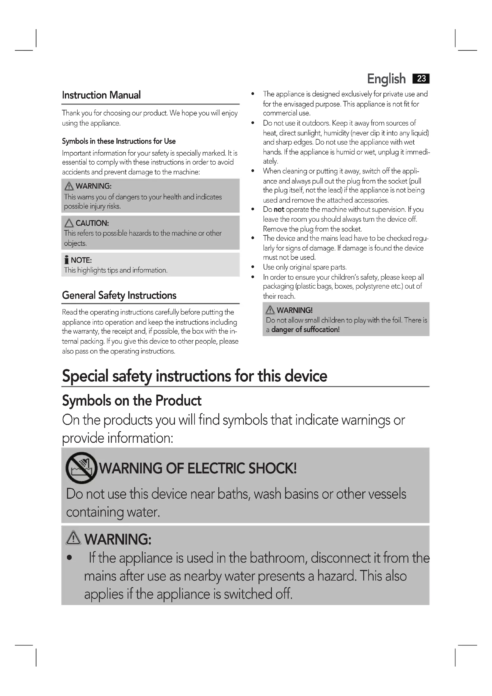 - The appliance is designed exclusively for private use and for the envisaged purpose. This appliance is not fit for commercial use.