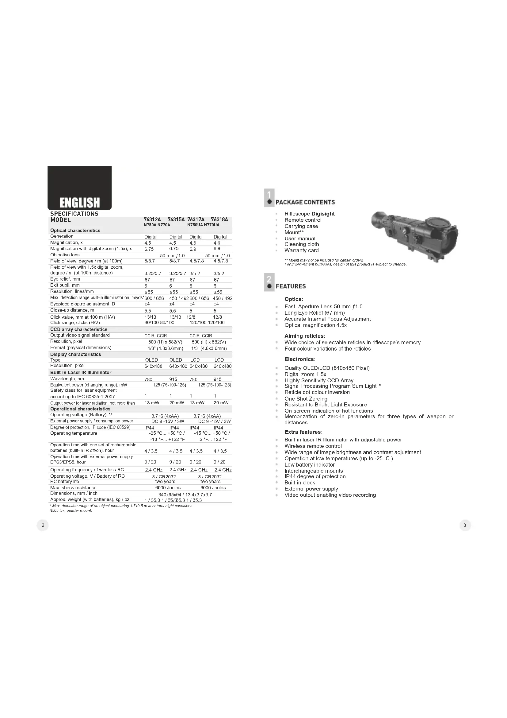 | Digital Riflescope DIGISIGHT | 2-15 | ENGLISH |