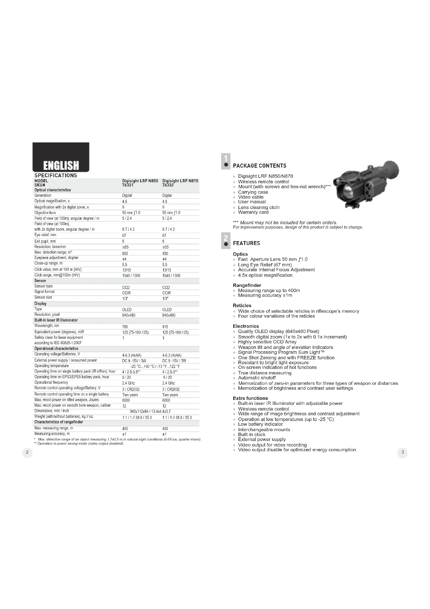 | DIGITAL RIFLESCOPE DIGISIGHT LRF N850/N870 | 2-17 | ENGLISH |
