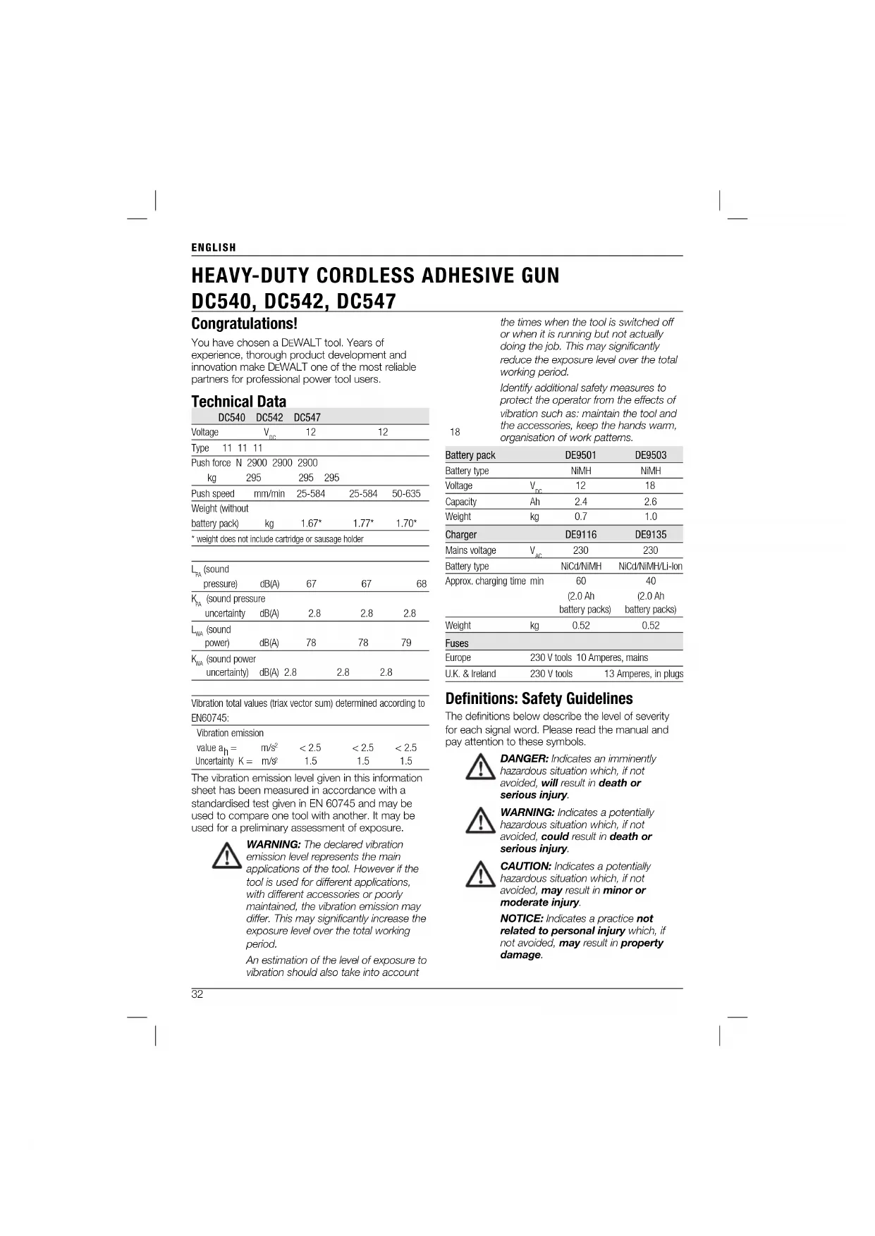 USER MANUAL DC542 DEWALT