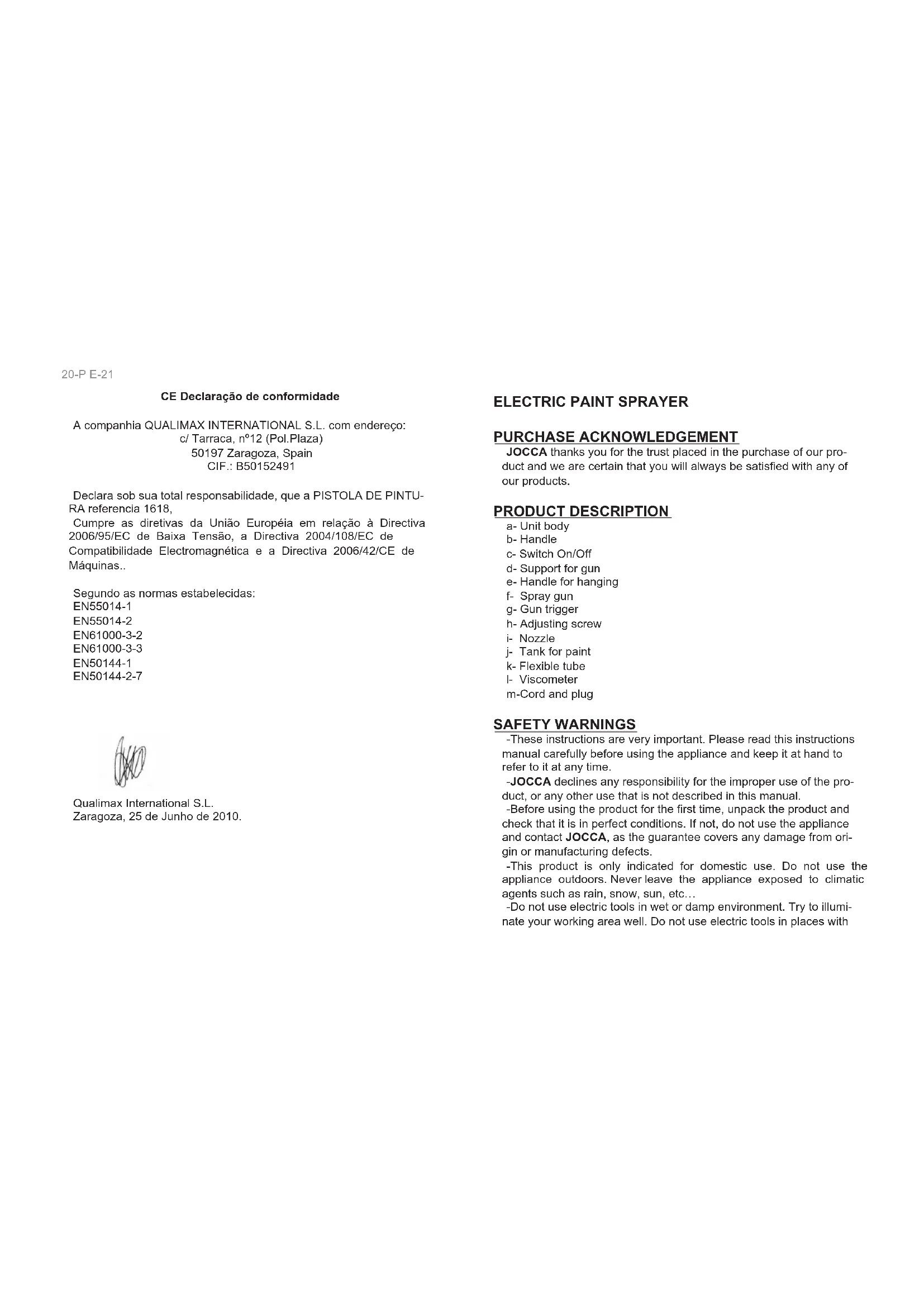 Download the instructions for your Paint spray in PDF format for free! Find your manual 1618 - JOCCA and take your electronic device back in hand. On this page are published all the documents necessary for the use of your device. 1618 by JOCCA.