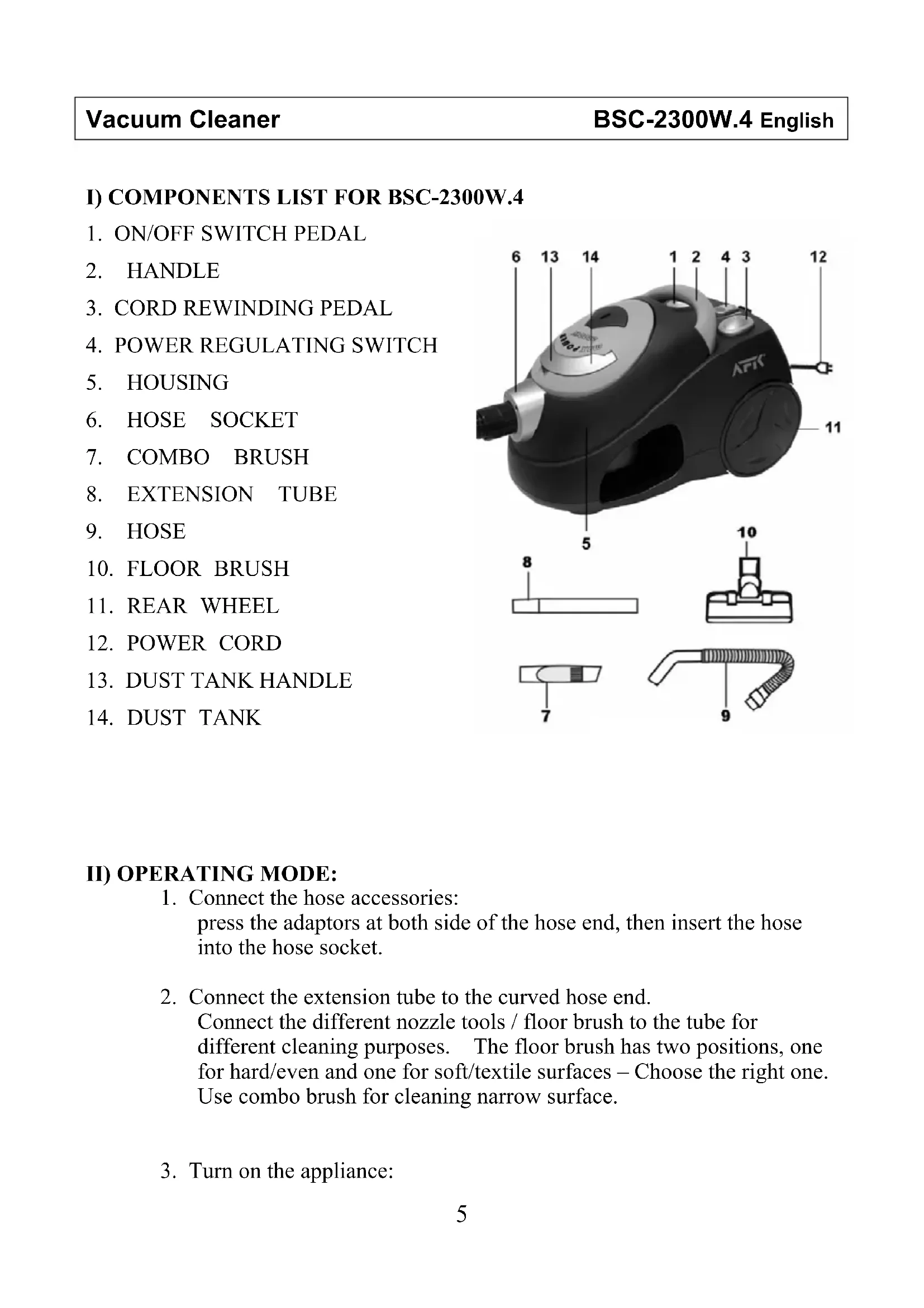 BSC2300W.4 - Vacuum Cleaner AFK - Free user manual and instructions