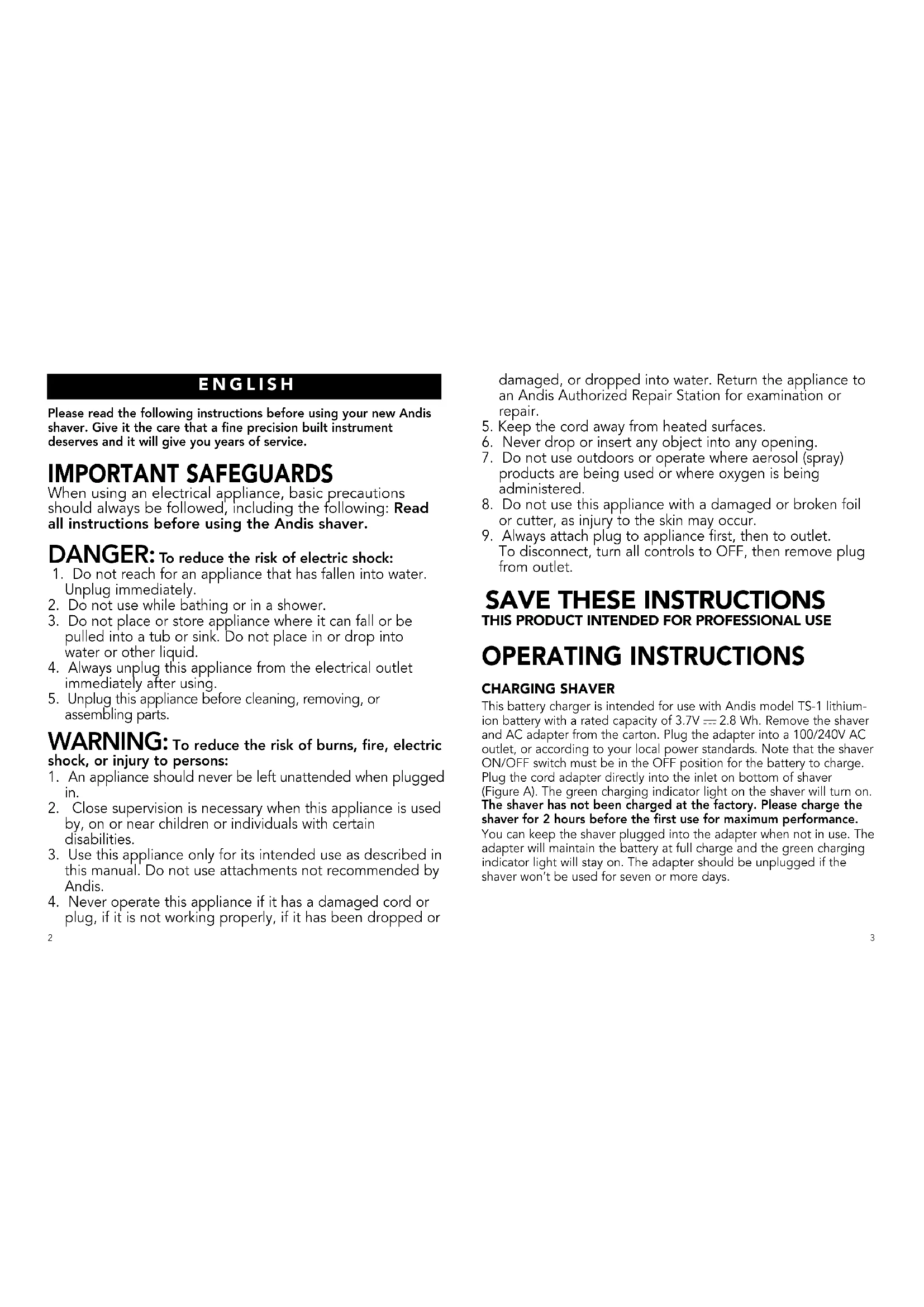 When using an electrical appliance, basic precautions should always be followed, including the following: Read all instructions before using the Andis shaver.