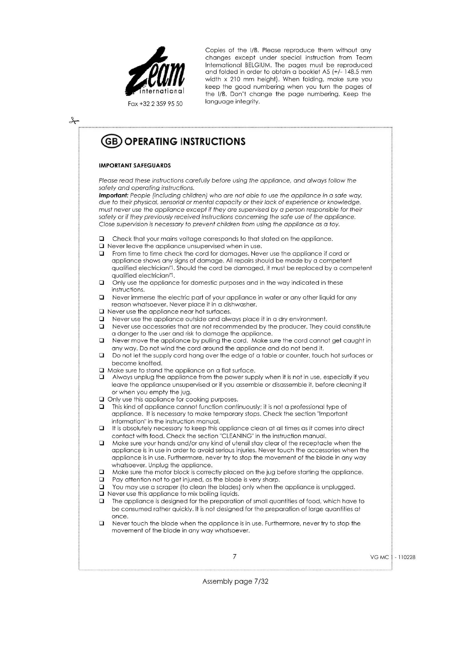 Please read these instructions carefully before using the appliance, and always follow the safety and operating instructions.