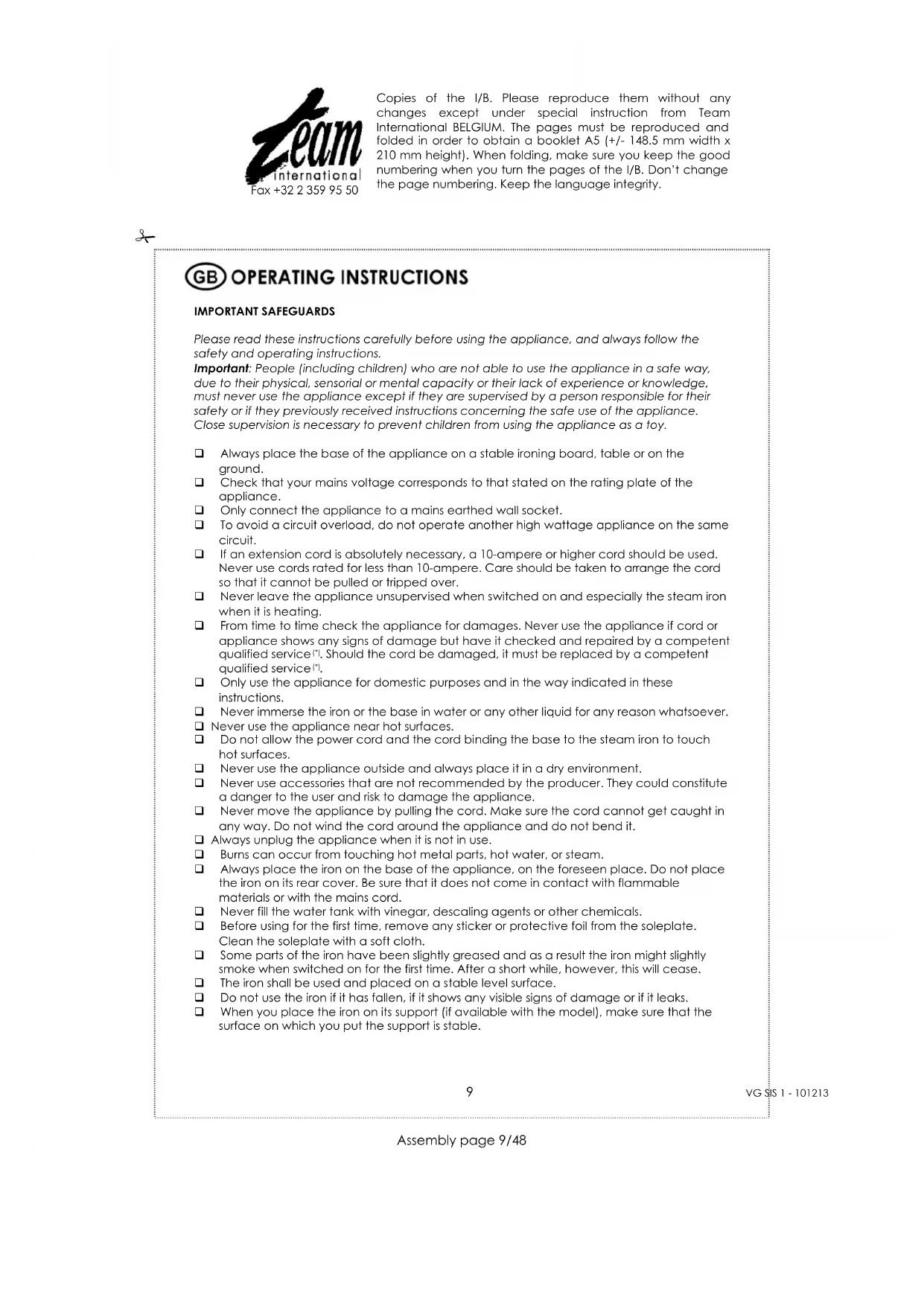 ☐ Do not use the iron if it has fallen, if it shows any visible signs of damage or if it leaks.